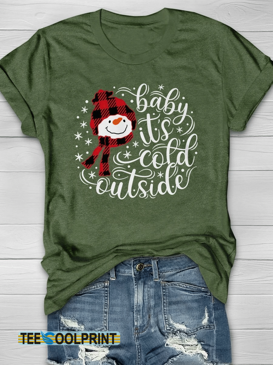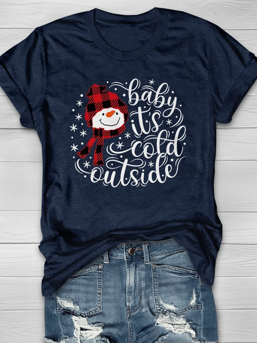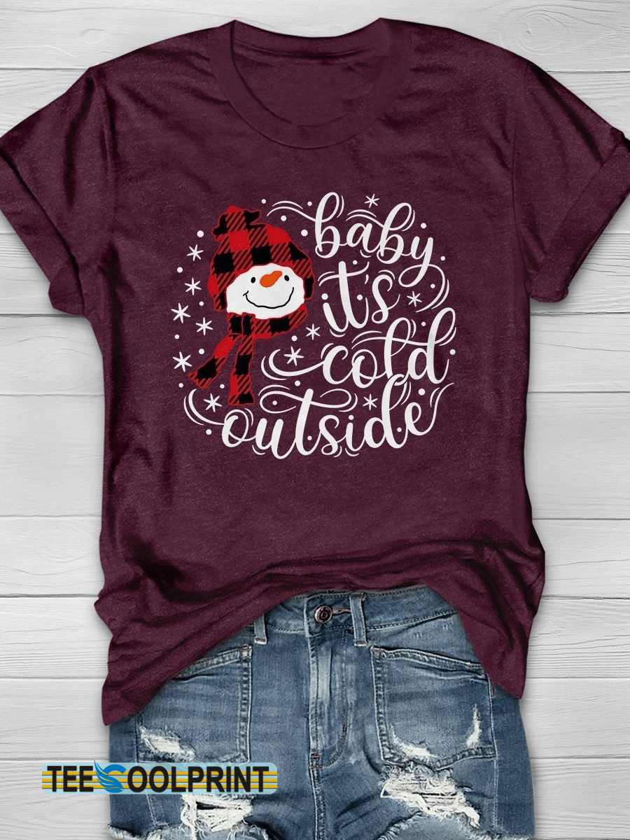 Baby It’S Cold Outside Christmas Snowman Print Short Sleeve T-Shirt