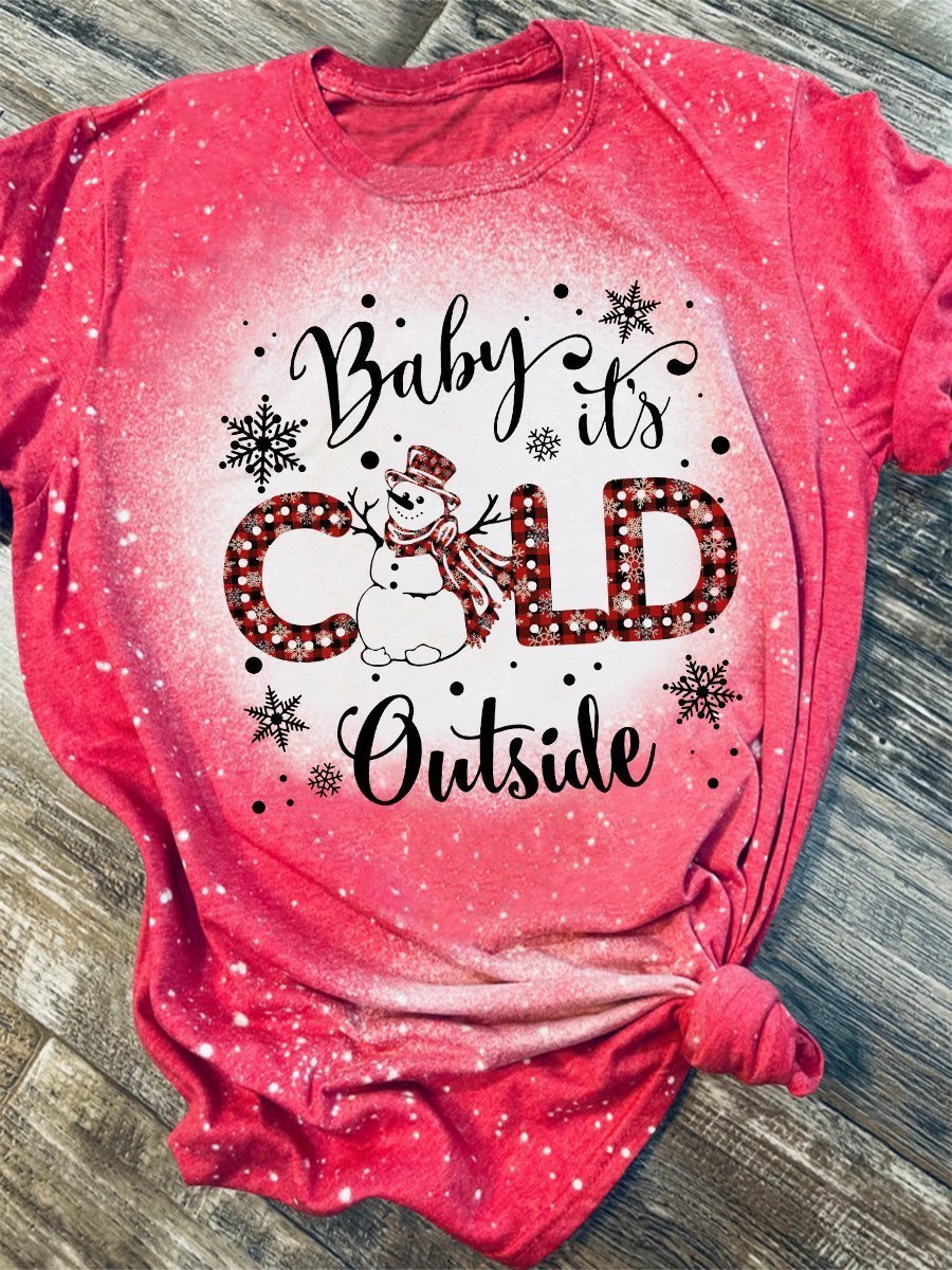 Baby It’S Cold Outside Print Short Sleeve T-Shirt