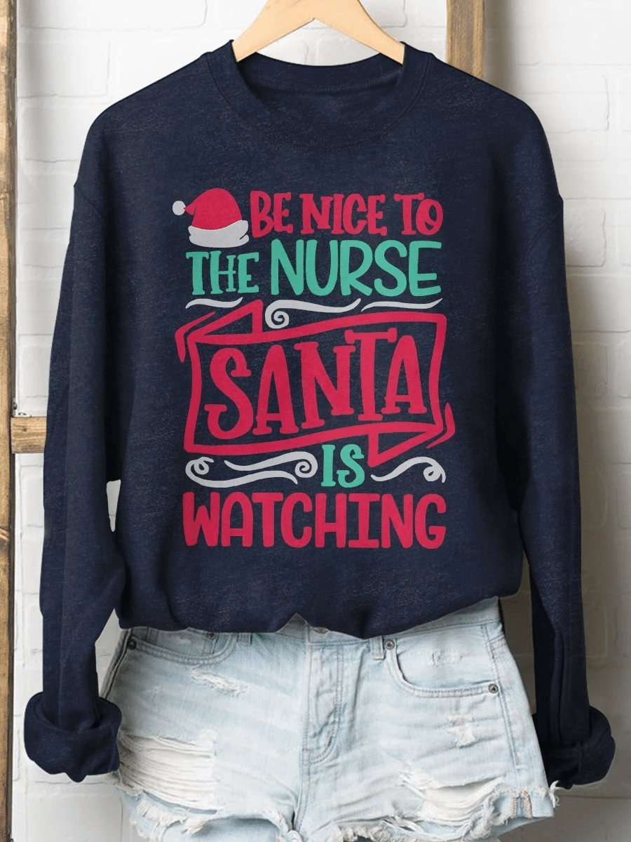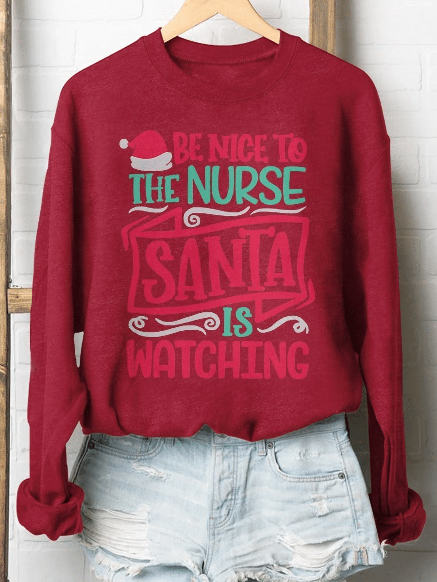 Be Nice To The Nurse Christmas Print Long Sleeve Sweatshirt