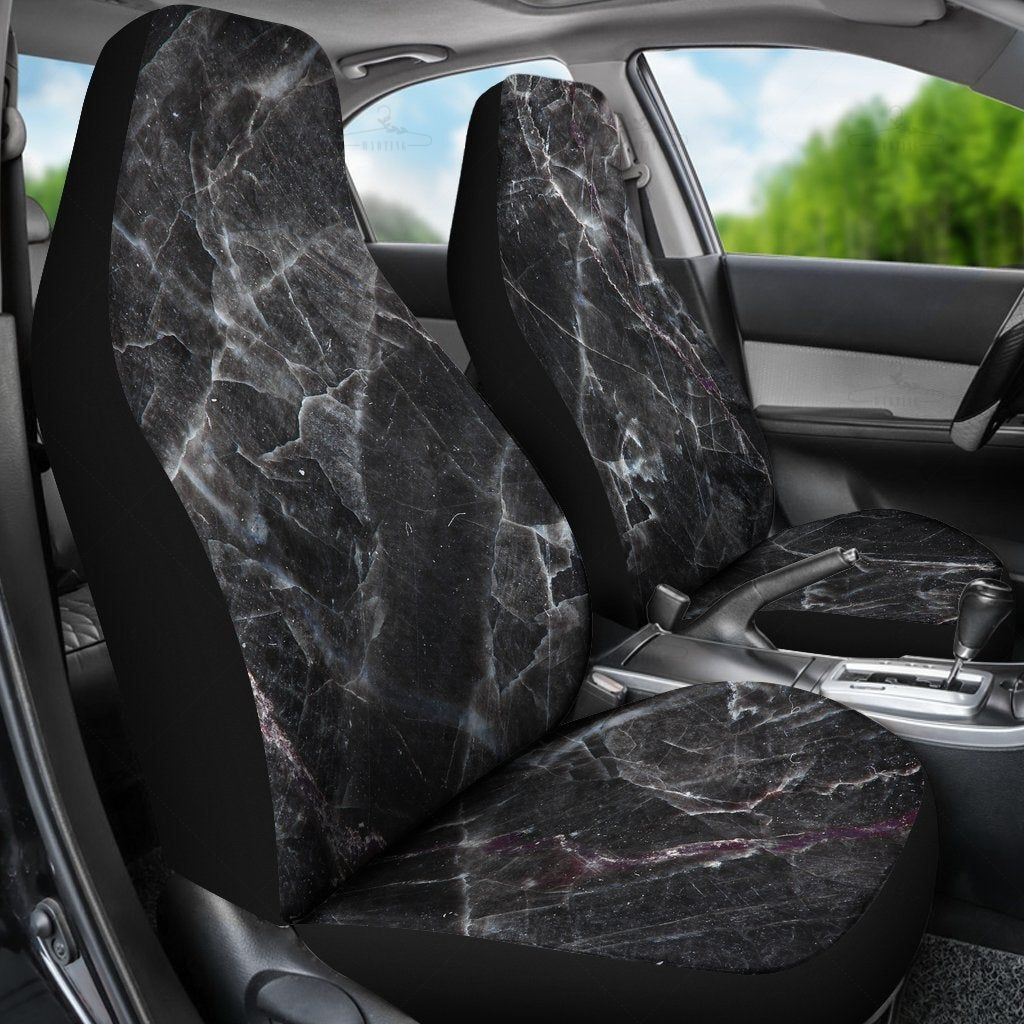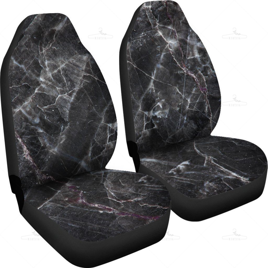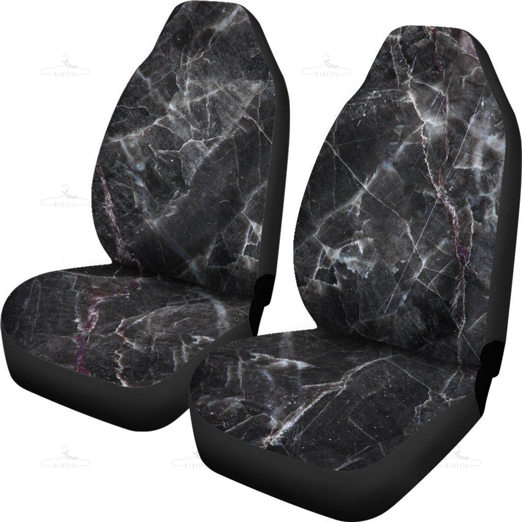 Black / Grey Stone Marble Print Car Seat Covers Pair, 2 Front Seat Covers, Car Seat Covers, Car Seat Protector, Car Accessory
