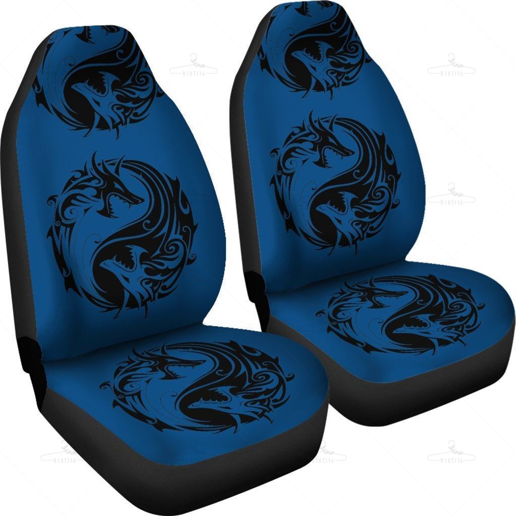 Blue Dragon Yin Yang Car Seat Covers Pair, 2 Front Car Seat Covers, Seat Cover For Car, Car Seat Protector, Car Accessory