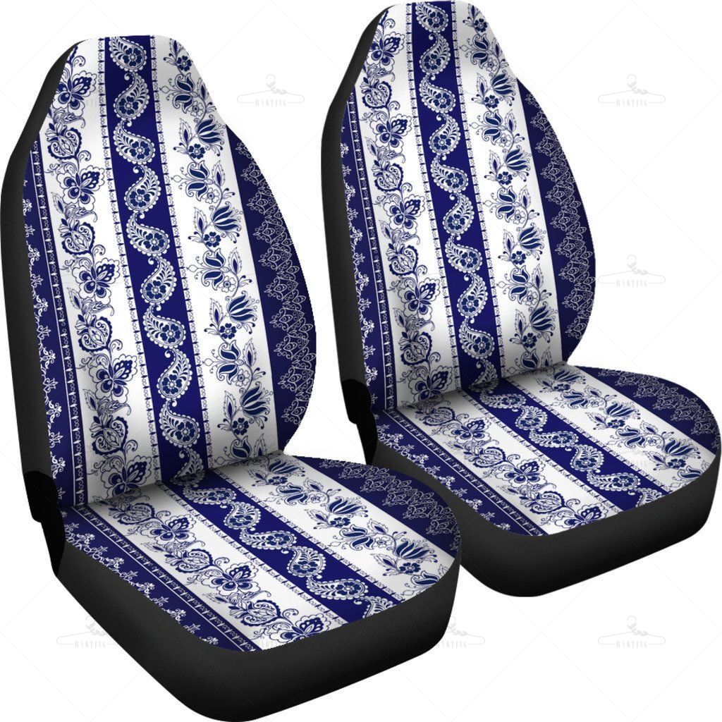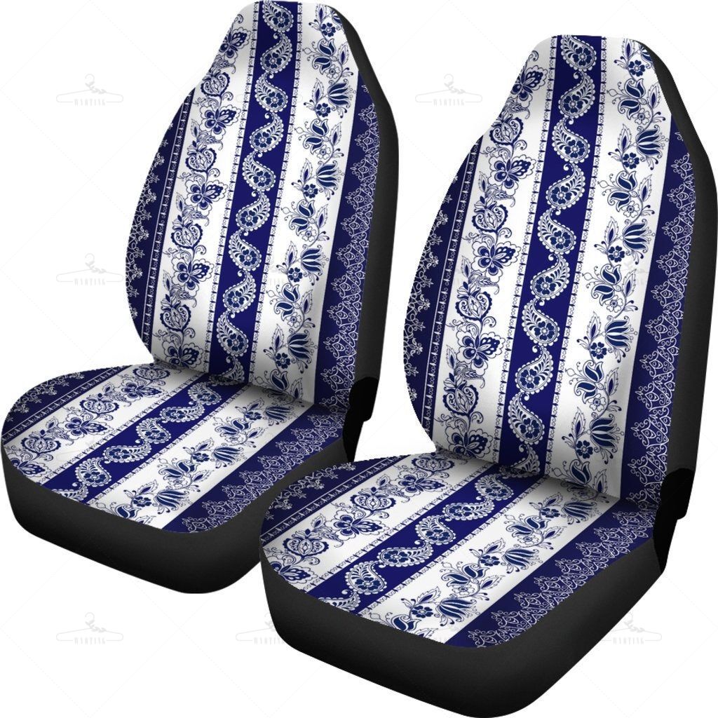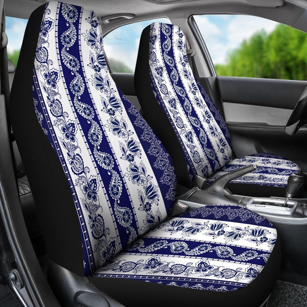 Blue / White Elegant Classy Stripe Decor Car Seat Covers Pair, 2 Front Seat Covers, Car Seat Covers, Car Seat Protector, Car Accessory