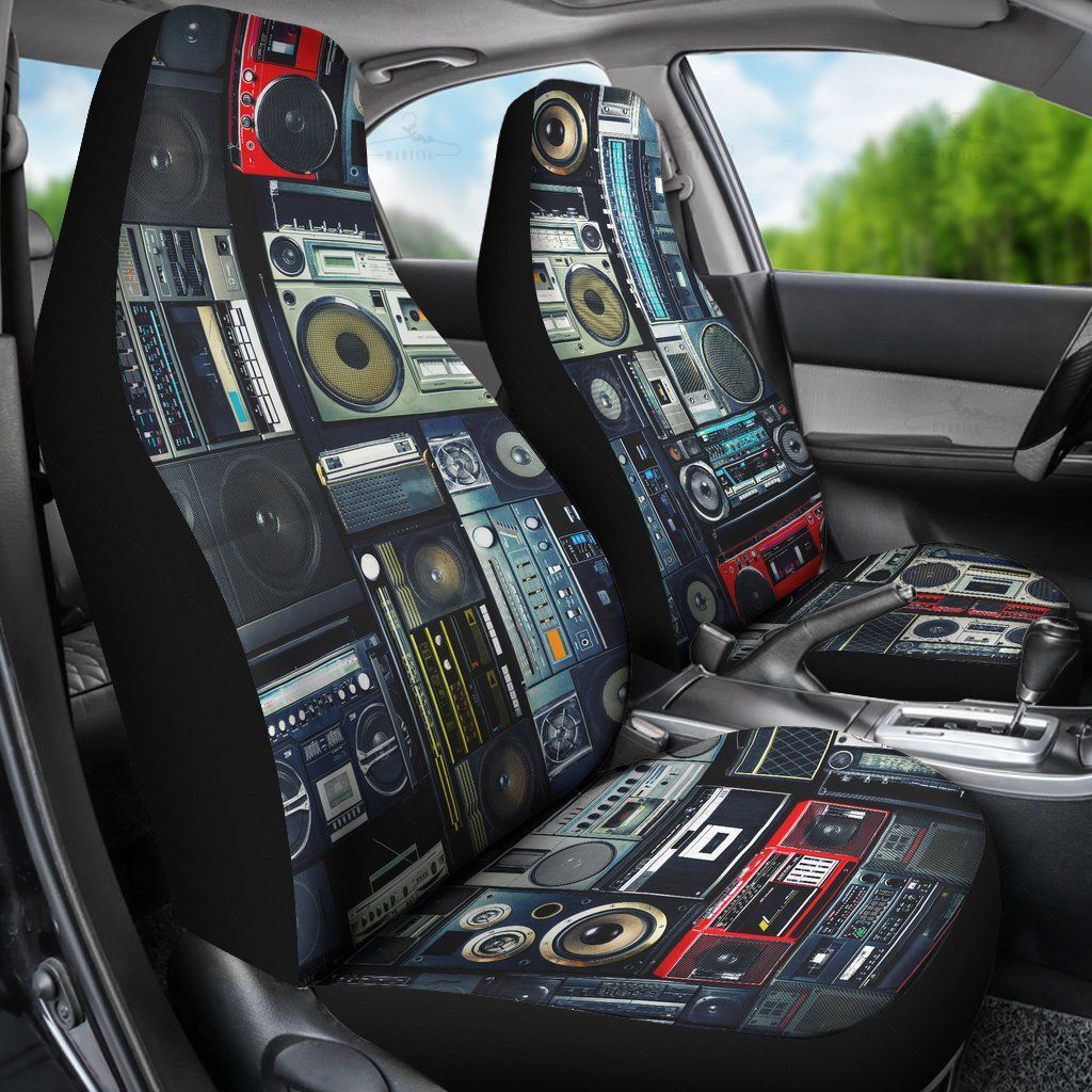 Boomboxes Stereos Car Seat Covers Pair, 2 Front Seat Covers, Car Seat Covers, Car Seat Protector, Car Accessory, Music, Radio, Vintage