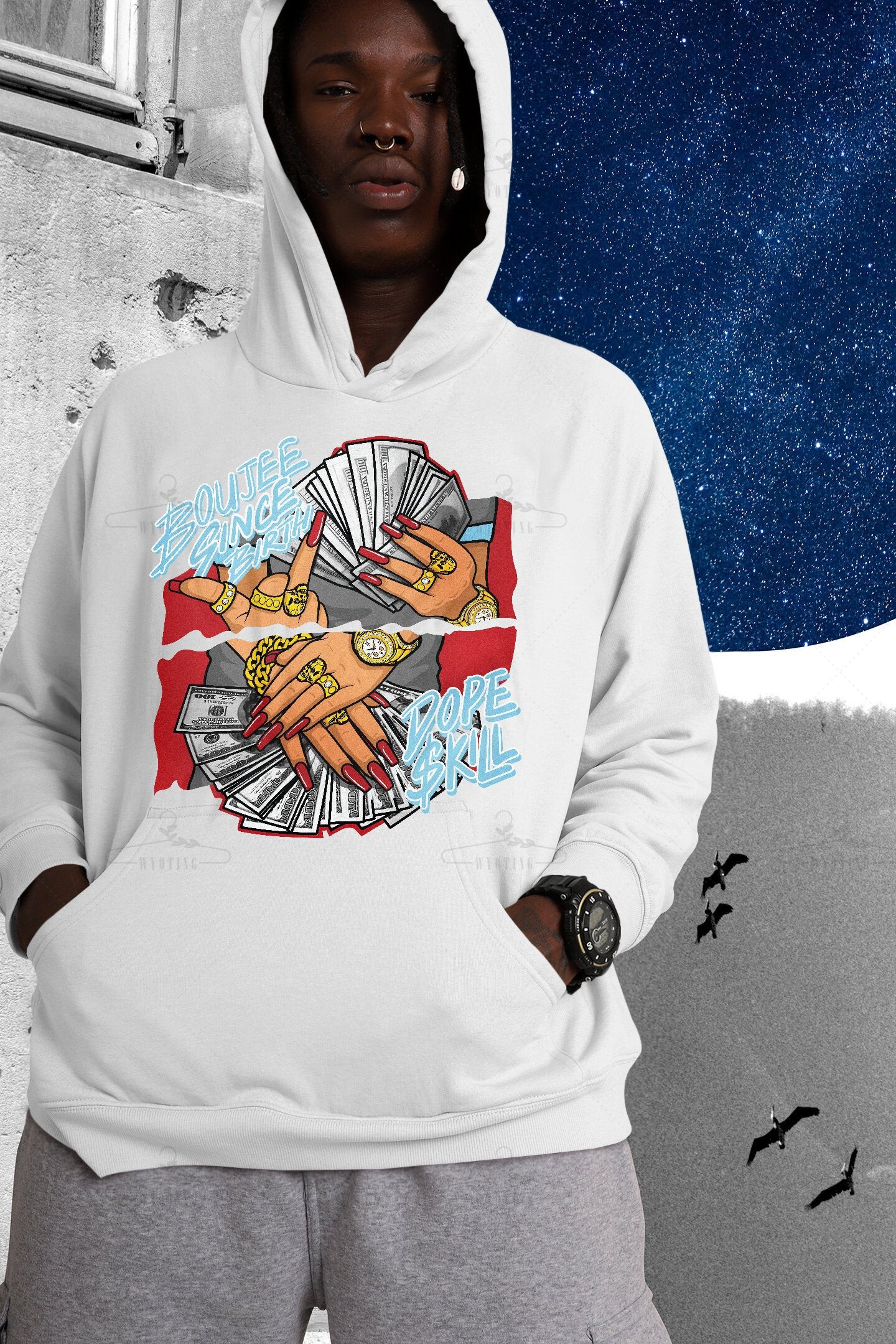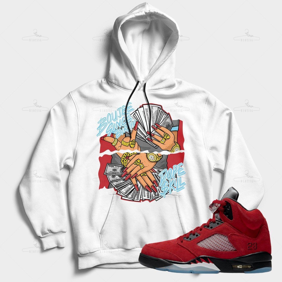 Boujee Since Birth Unisex Hoodie Match Jordan 5 Raging Bull