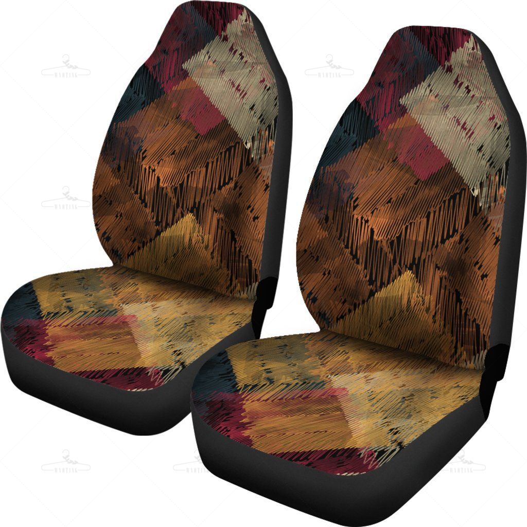 Brown Diagonal Patchwork Car Seat Covers Pair, 2 Front Car Seat Covers, Seat Cover For Car, Car Seat Protector, Car Accessory