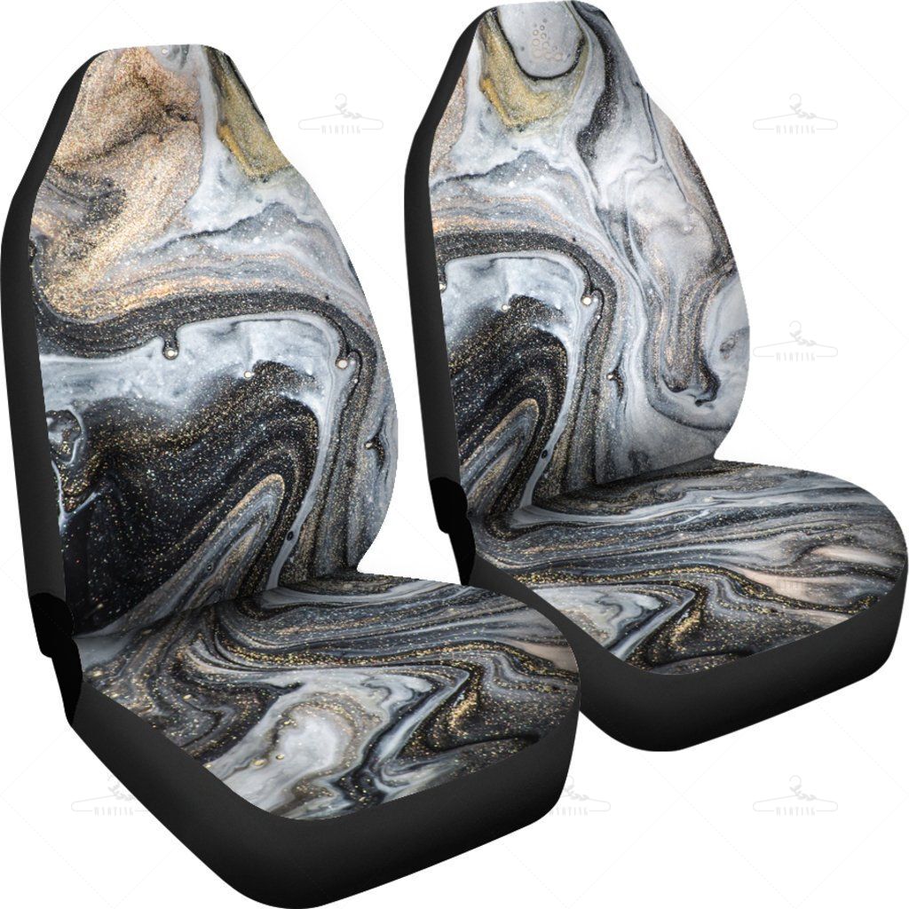 Brown / Grey / Gold Abstract Marble Swirls Car Seat Covers Pair, 2 Front Seat Covers, Car Seat Covers, Car Seat Protector, Car Accessory