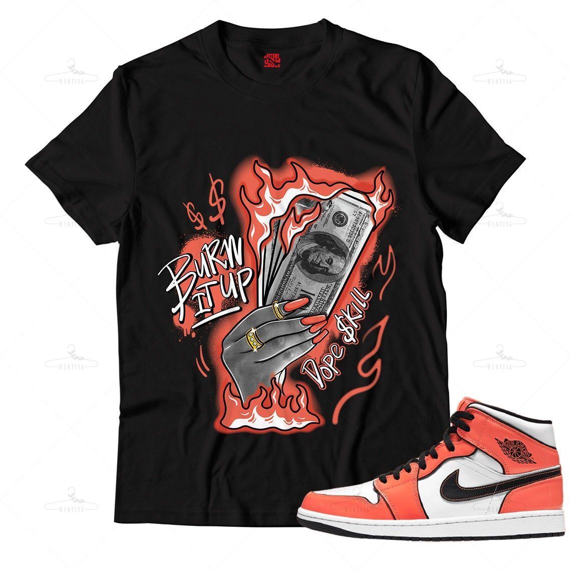Burn It Up Unisex Shirt Match Jordan 1 Mid Turf Orange