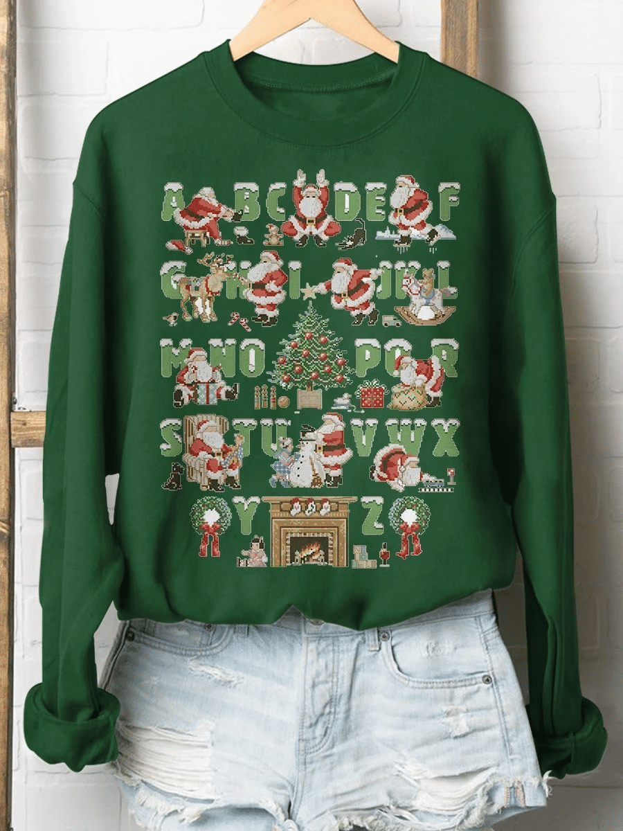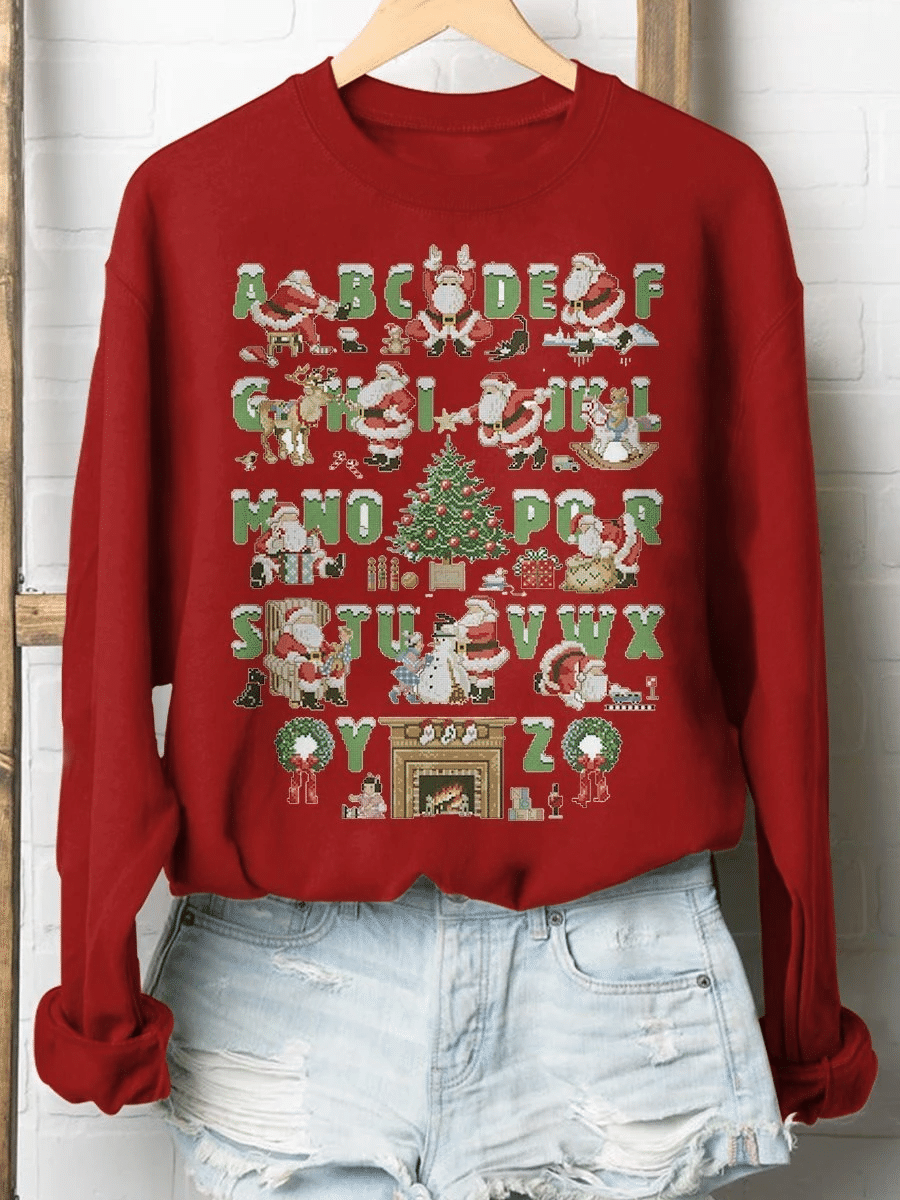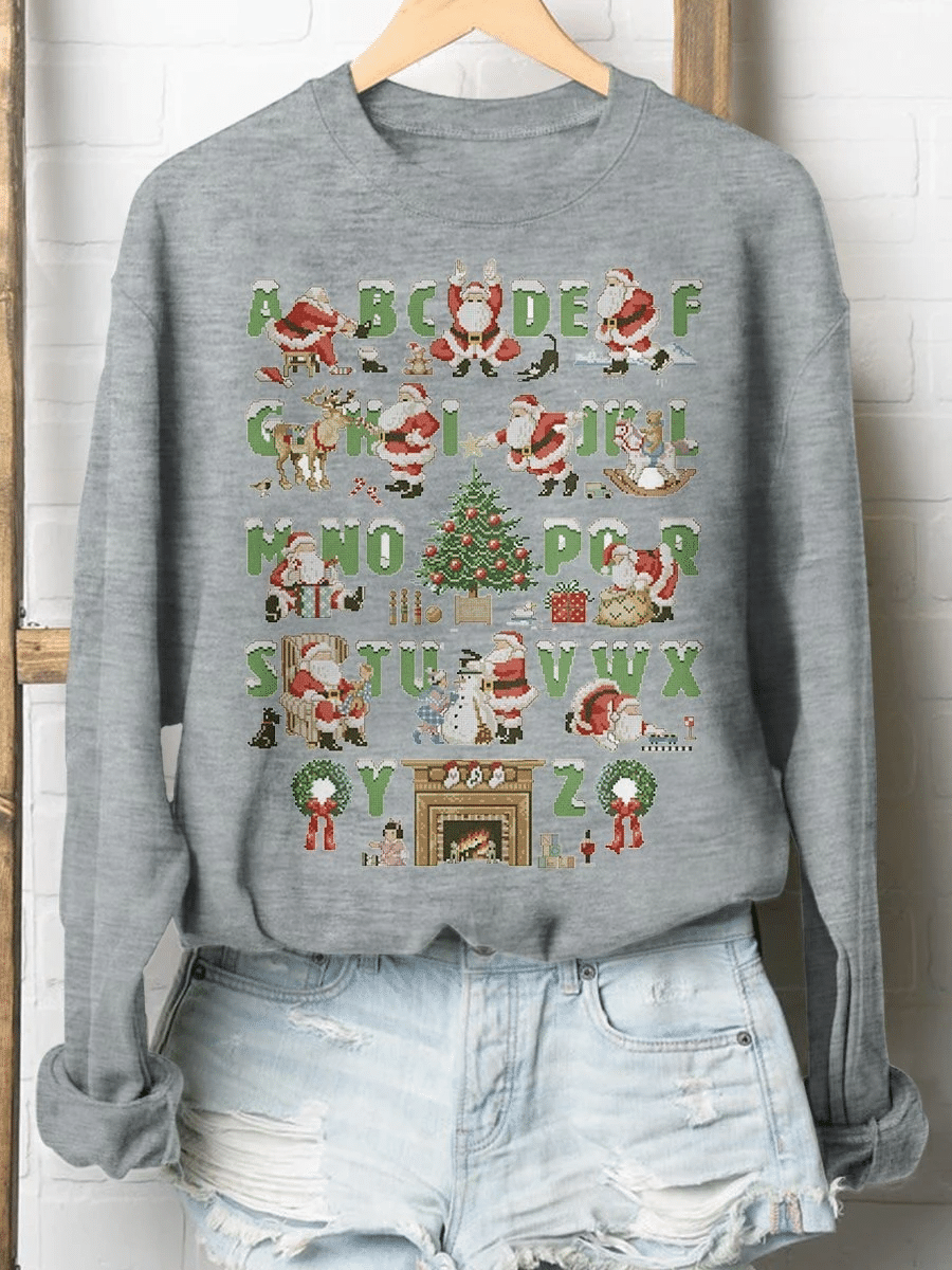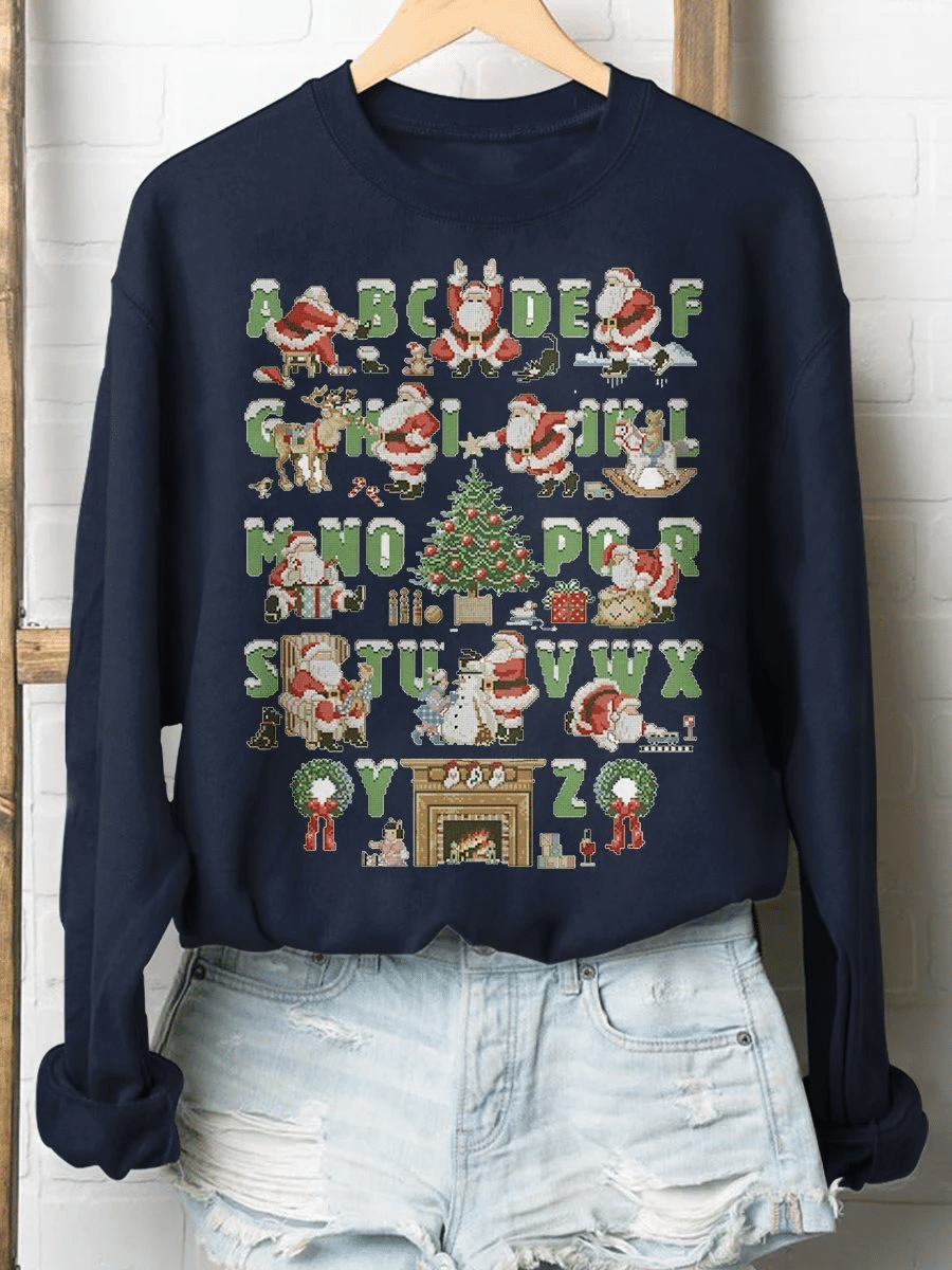 Christmas Alphabet Teacher Print Long Sleeve Sweatshirt