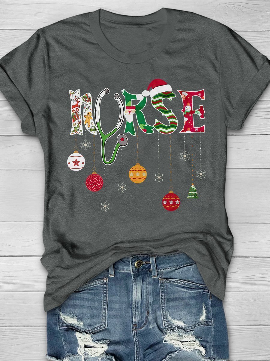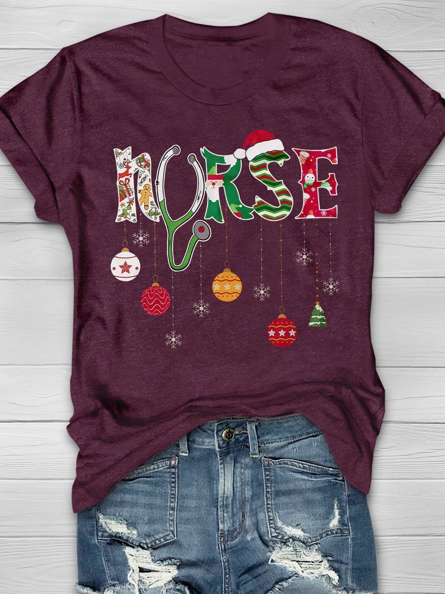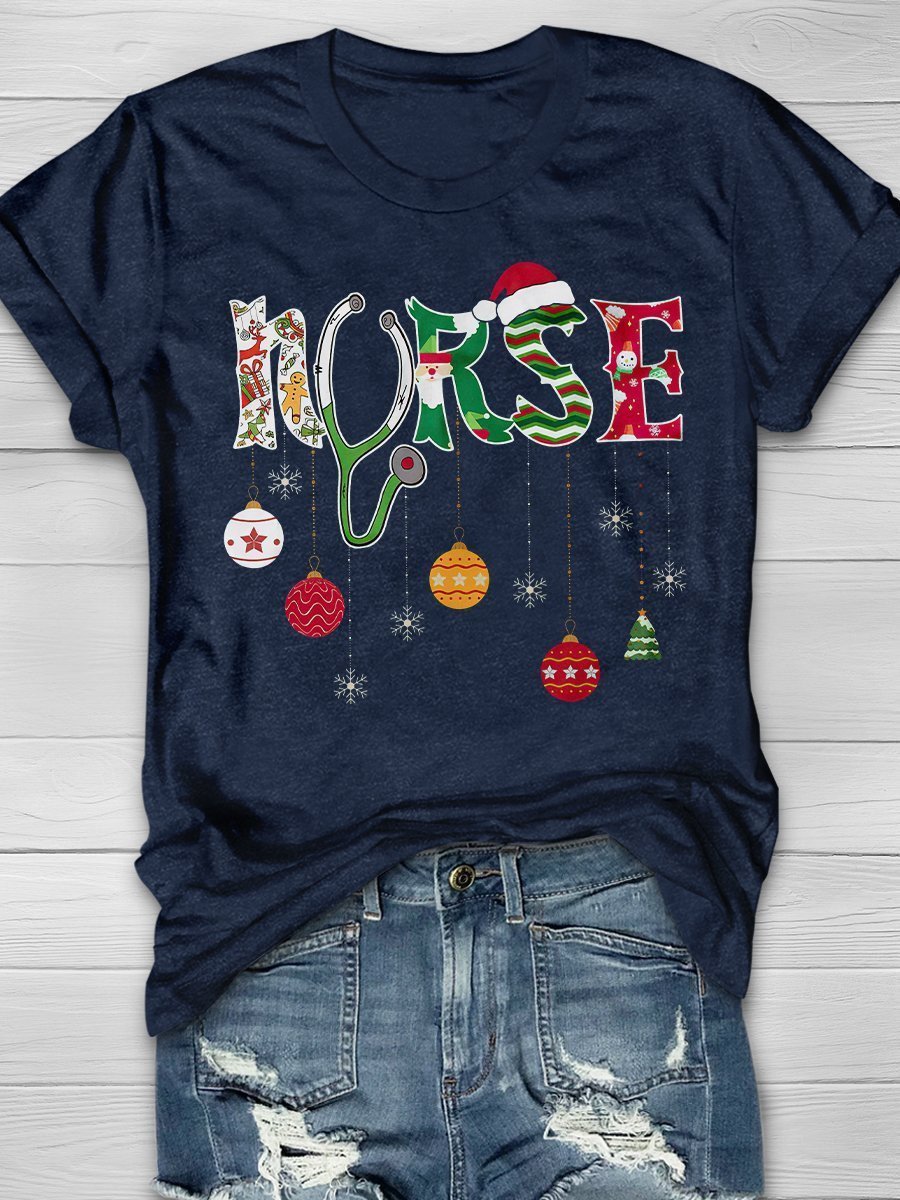 Christmas Balls Nurse Print Short Sleeve T-Shirt