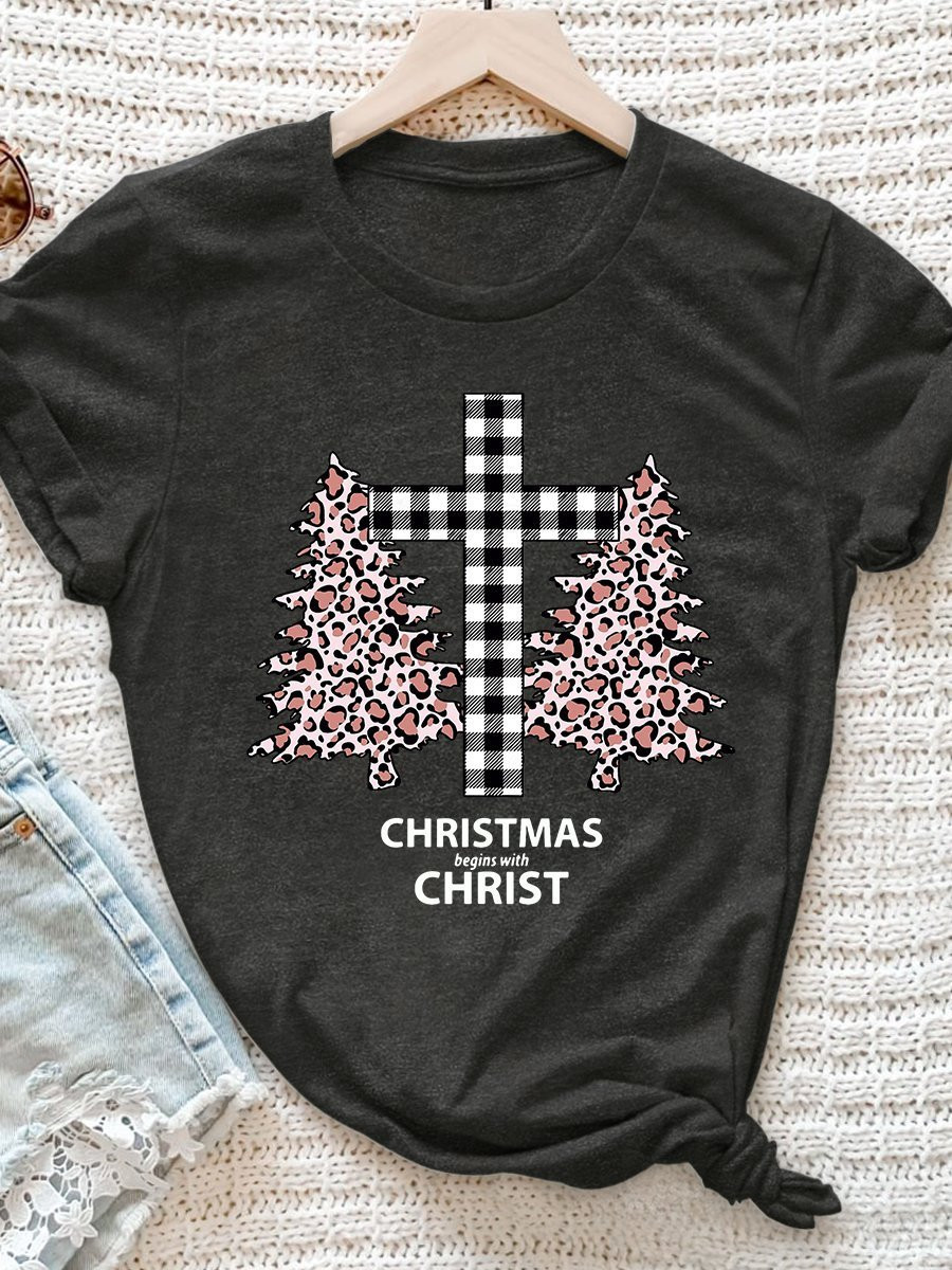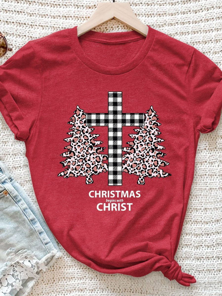 Christmas Begins With Christ Print Short Sleeve T-Shirt