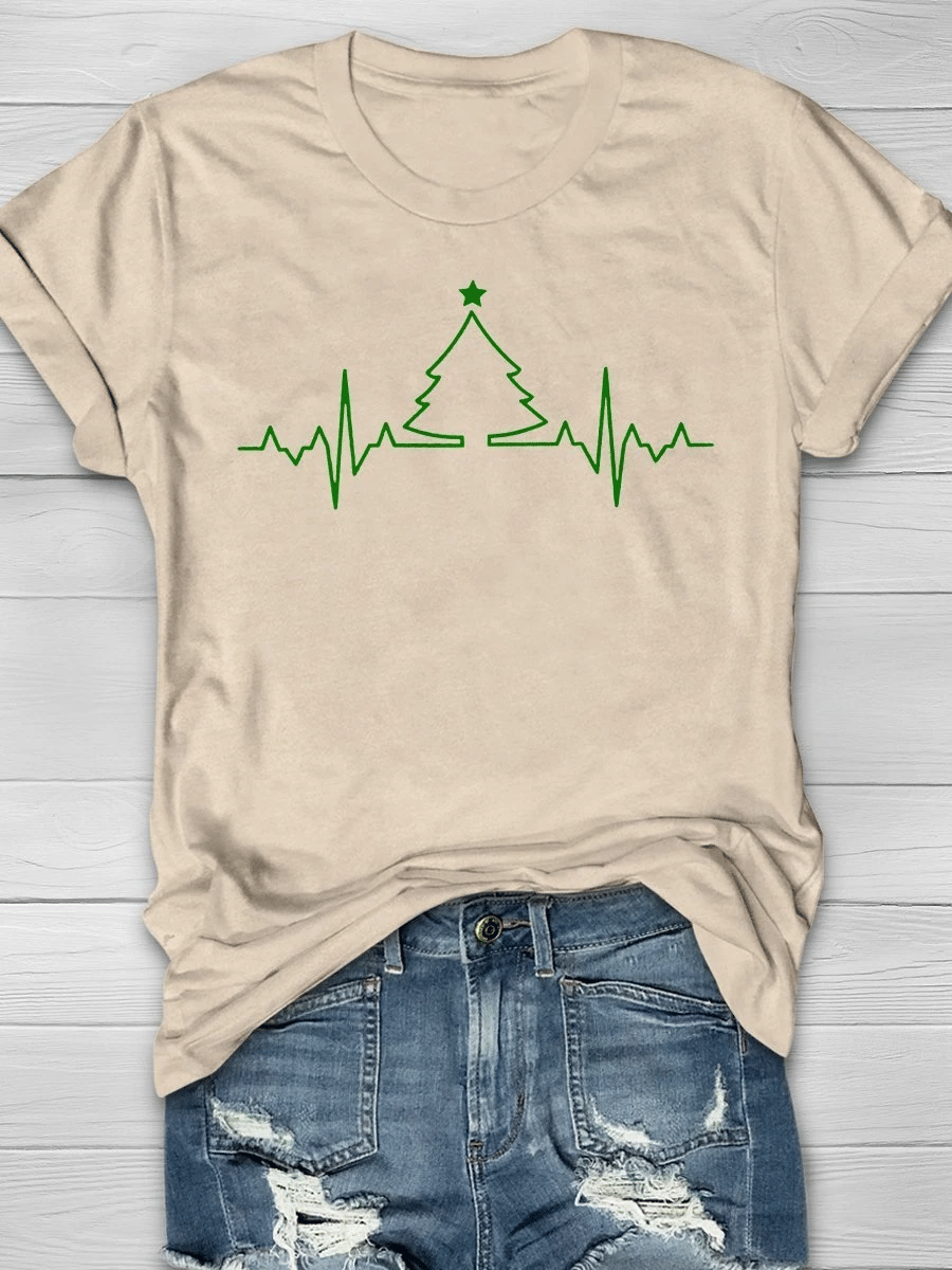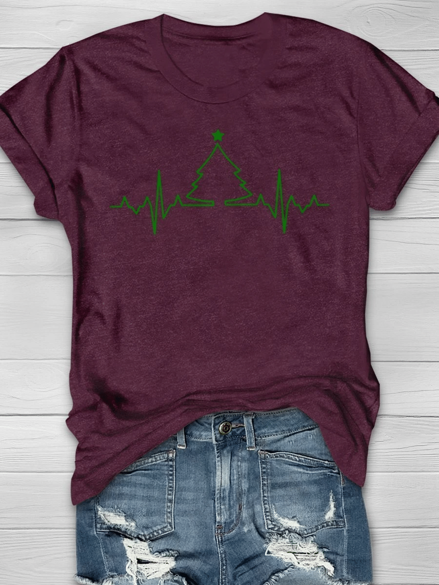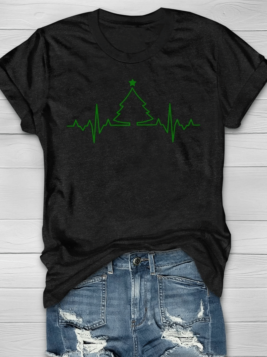 Christmas Heartbeat Print Short Sleeve T-Shirt