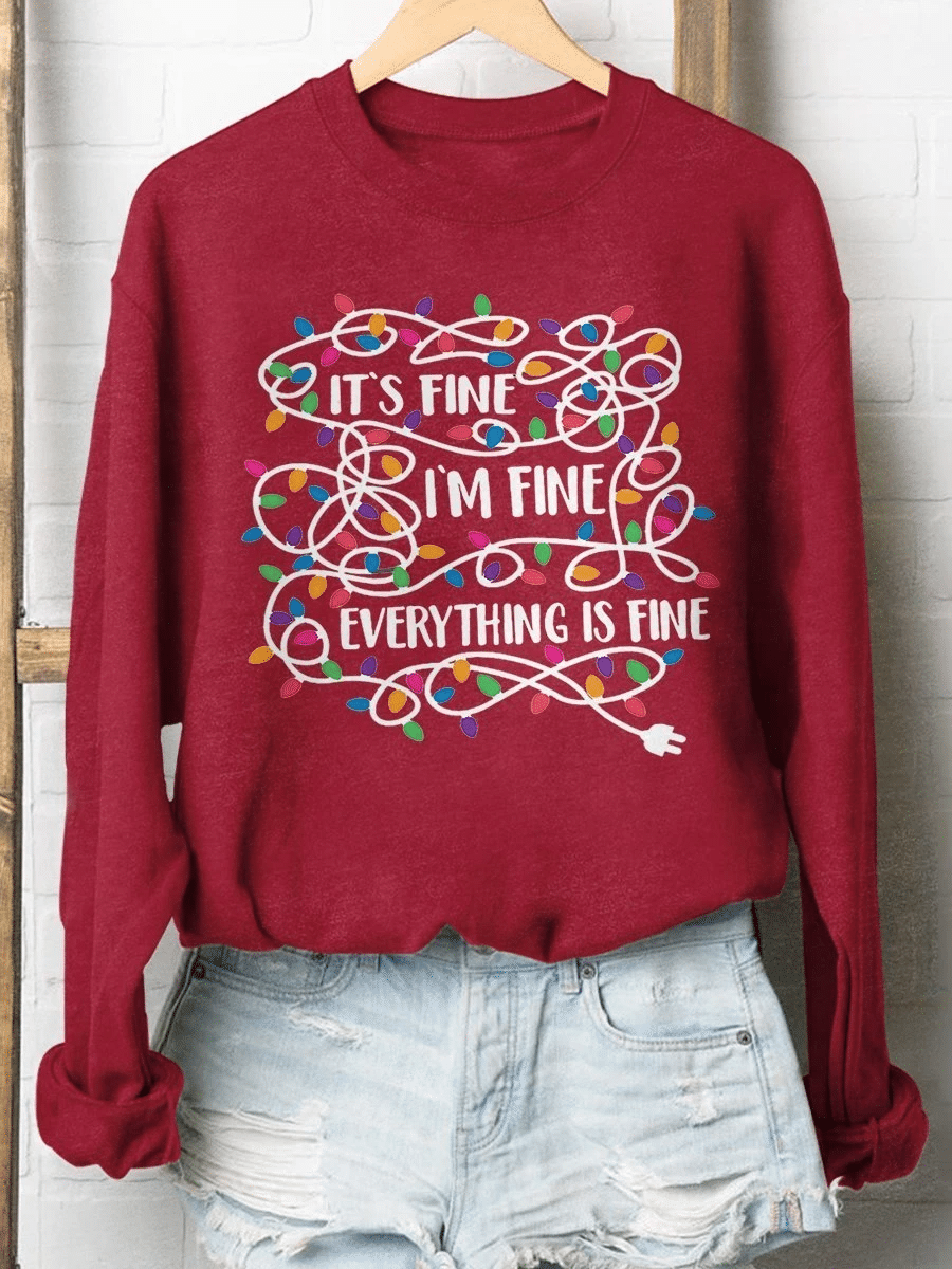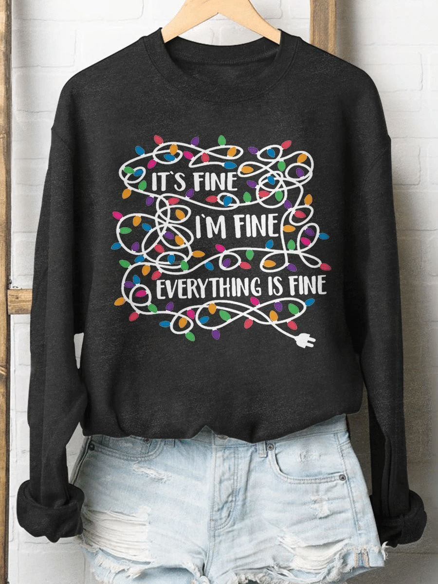 Christmas Lights Everything Is Fine Print Long Sleeve Sweatshirt