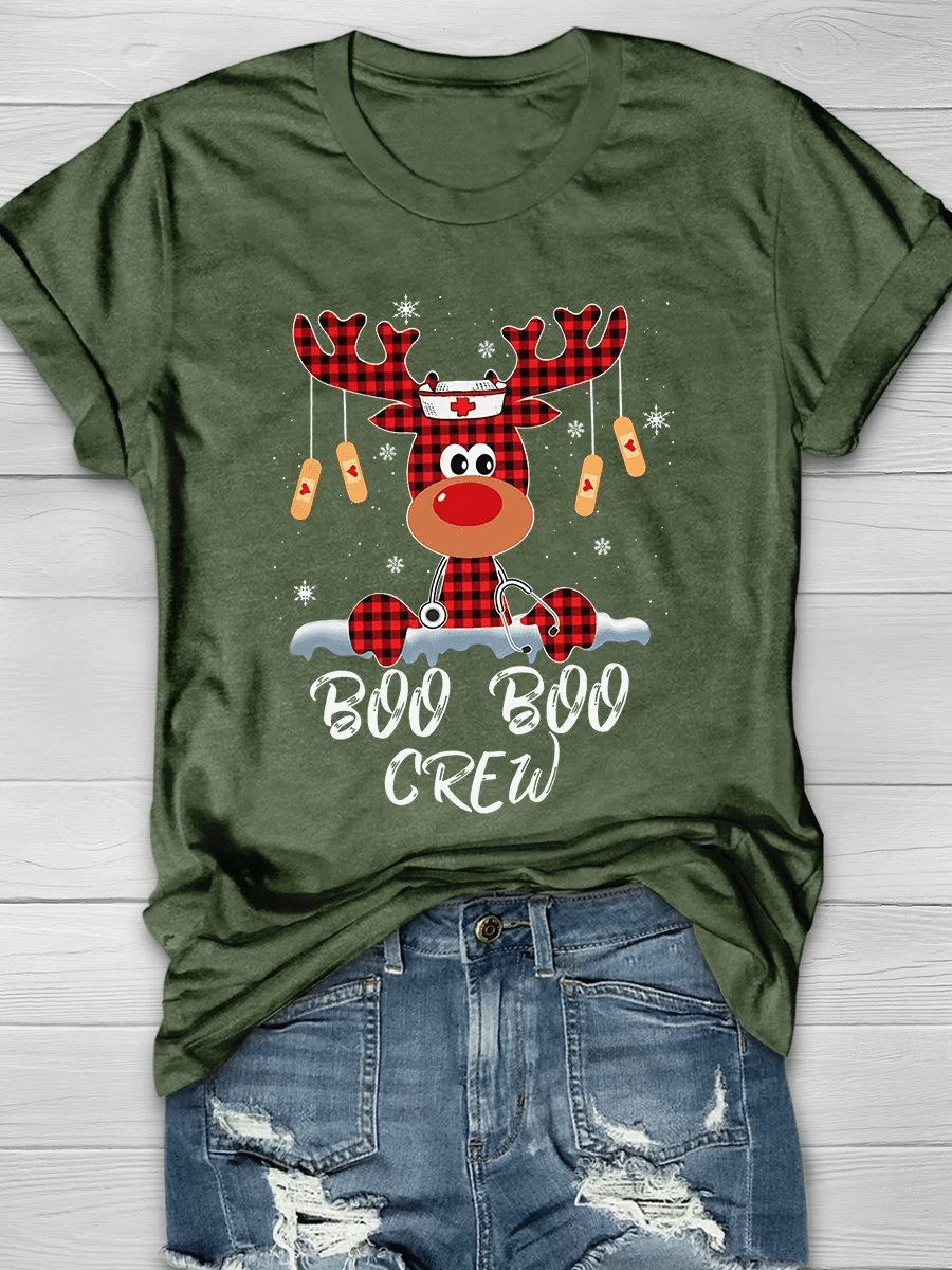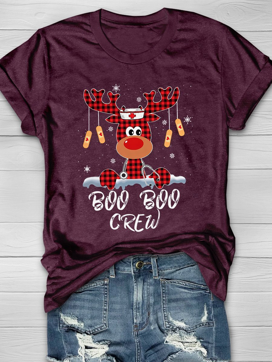 Christmas Nurse Crew Print Short Sleeve T-Shirt