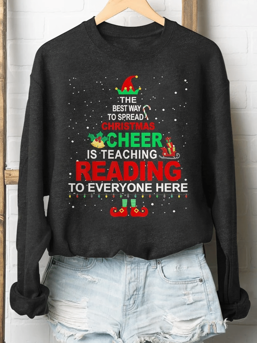 Christmas Read Teacher Print Long Sleeve Sweatshirt