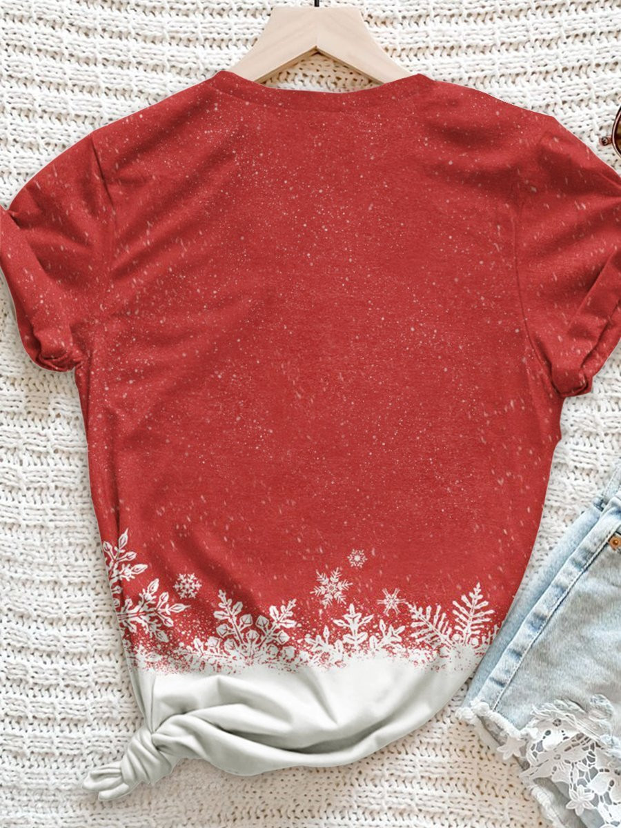 Christmas Reindeer Snowman Print Short Sleeve T-Shirt