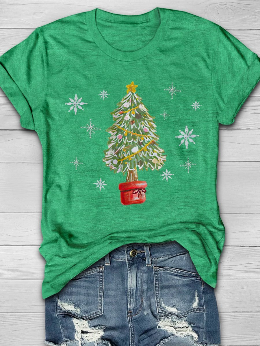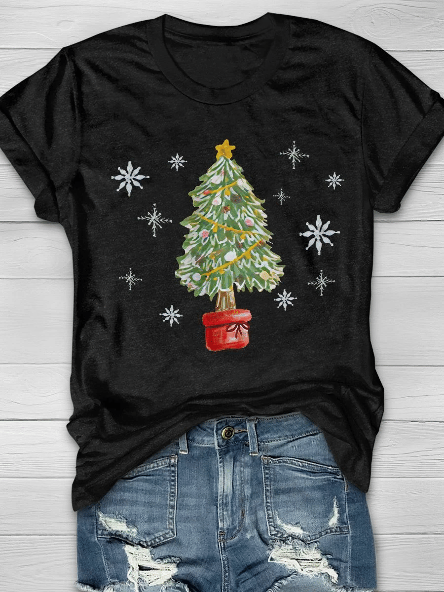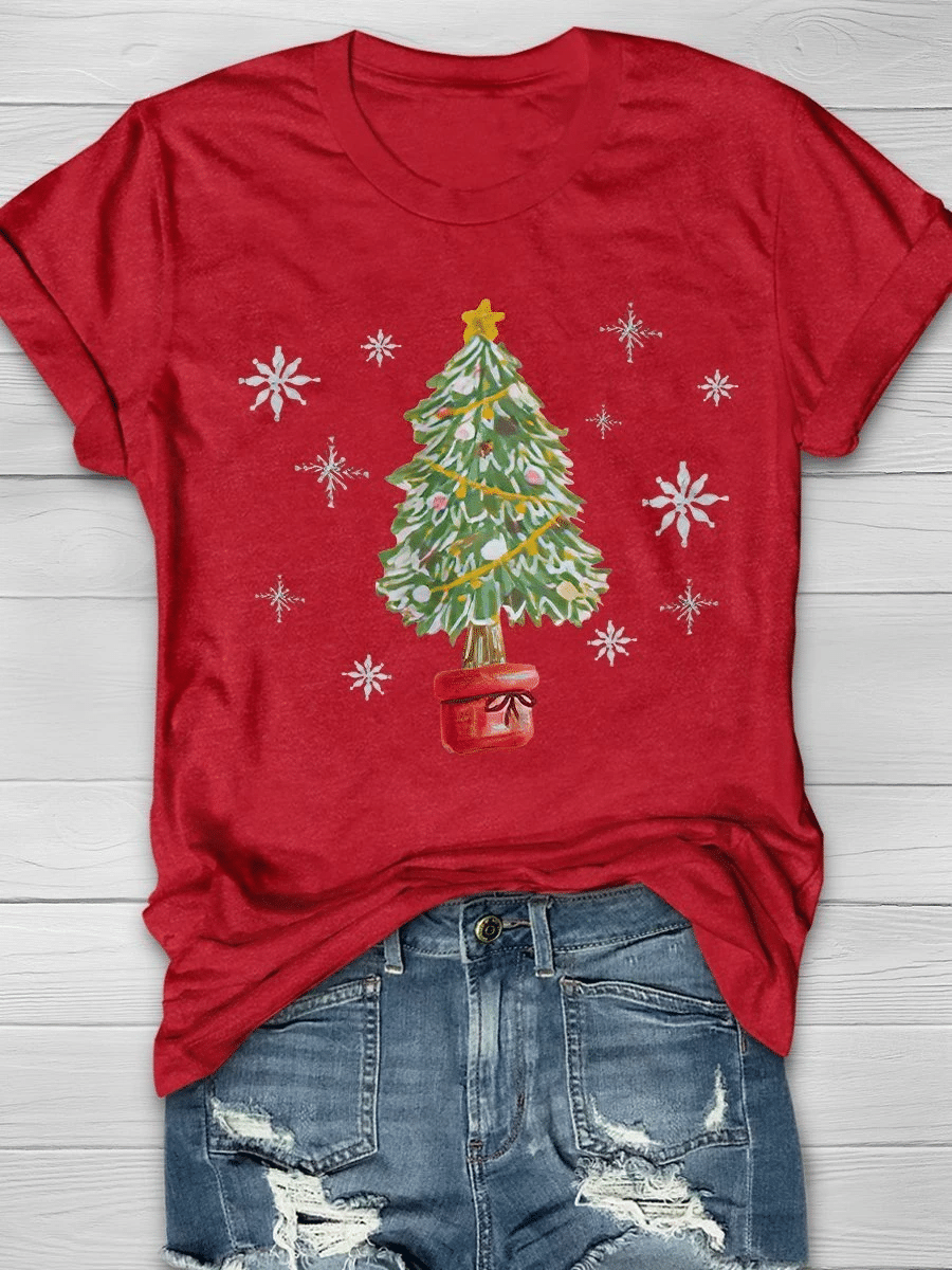 Christmas Tree And Snowflake Print Short Sleeve T-Shirt