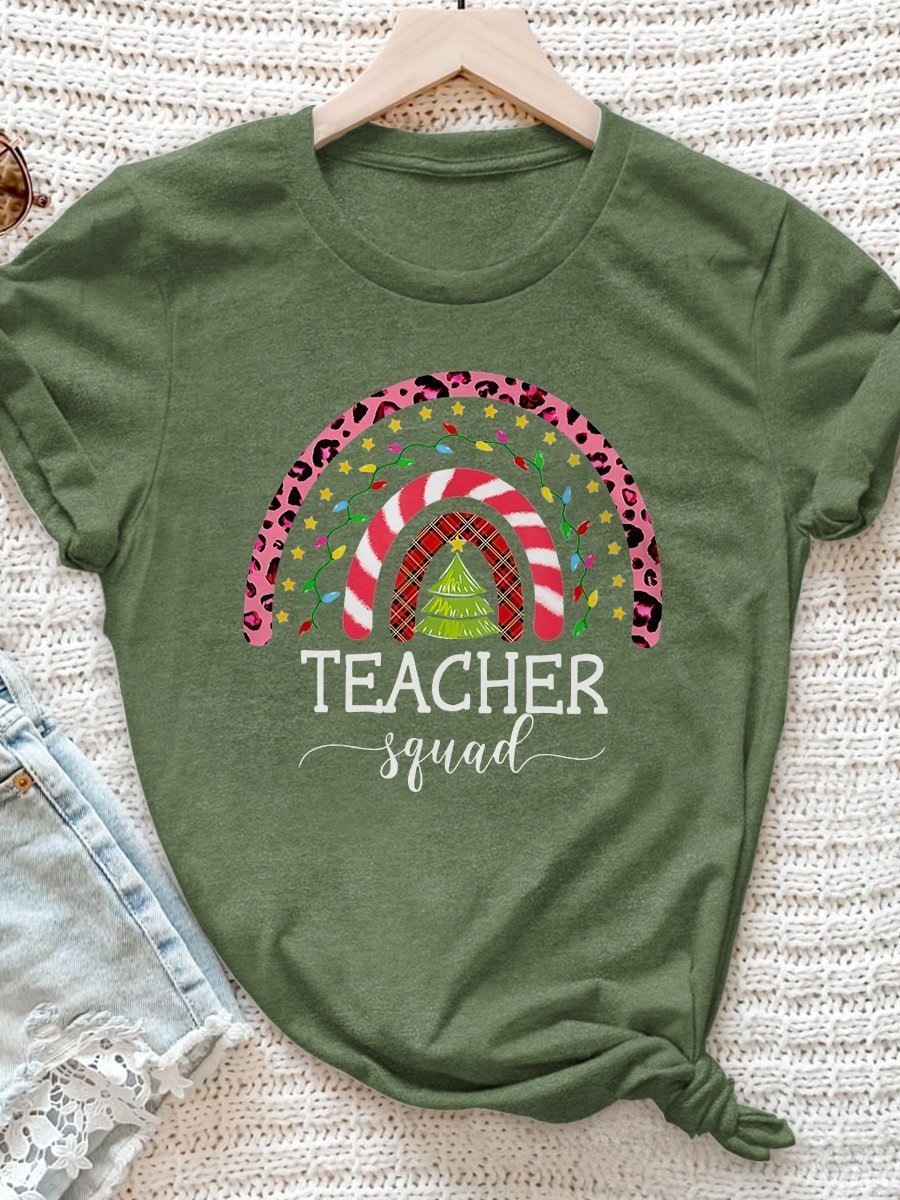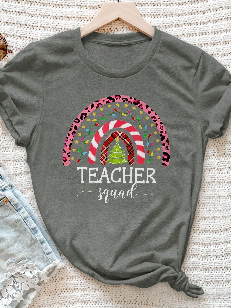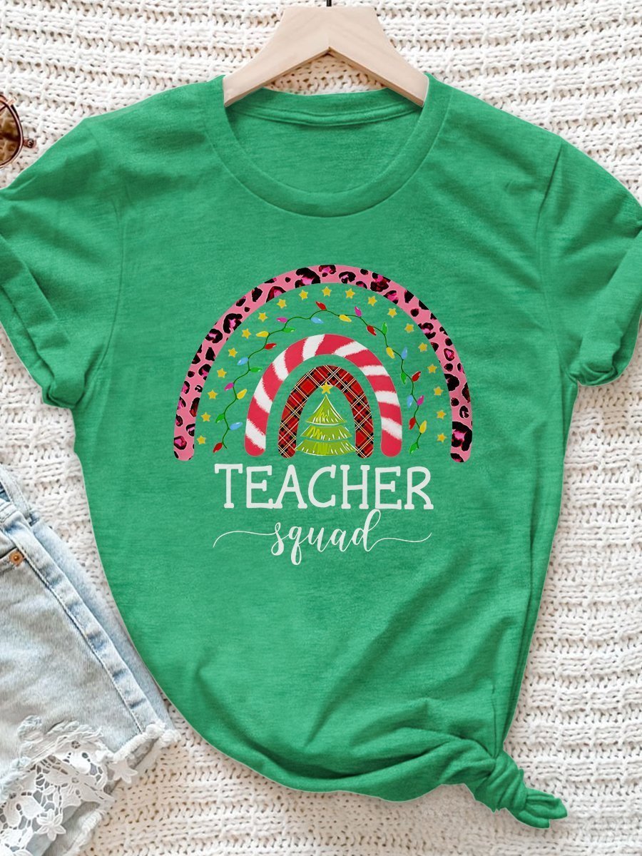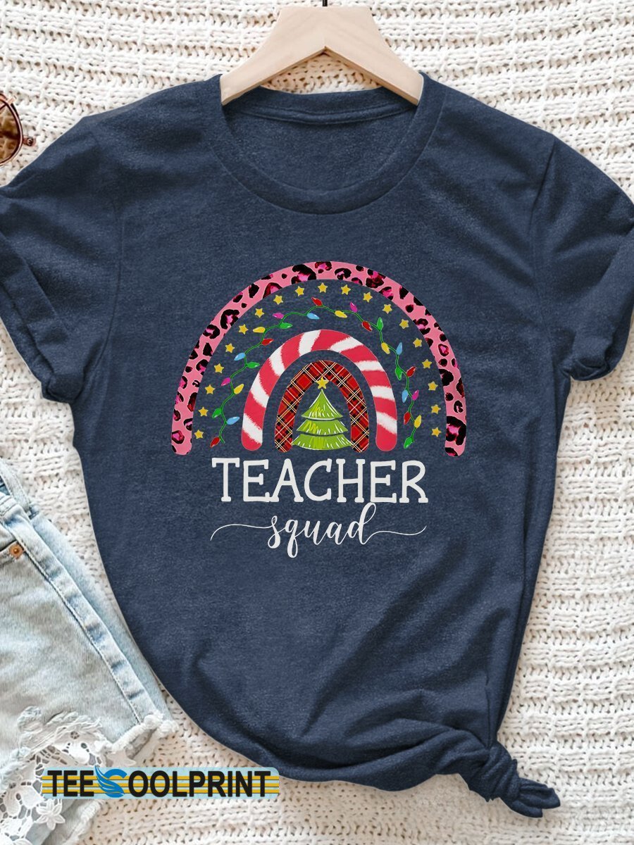 Christmas Tree Rainbow Teacher Squad Print Short Sleeve T-Shirt