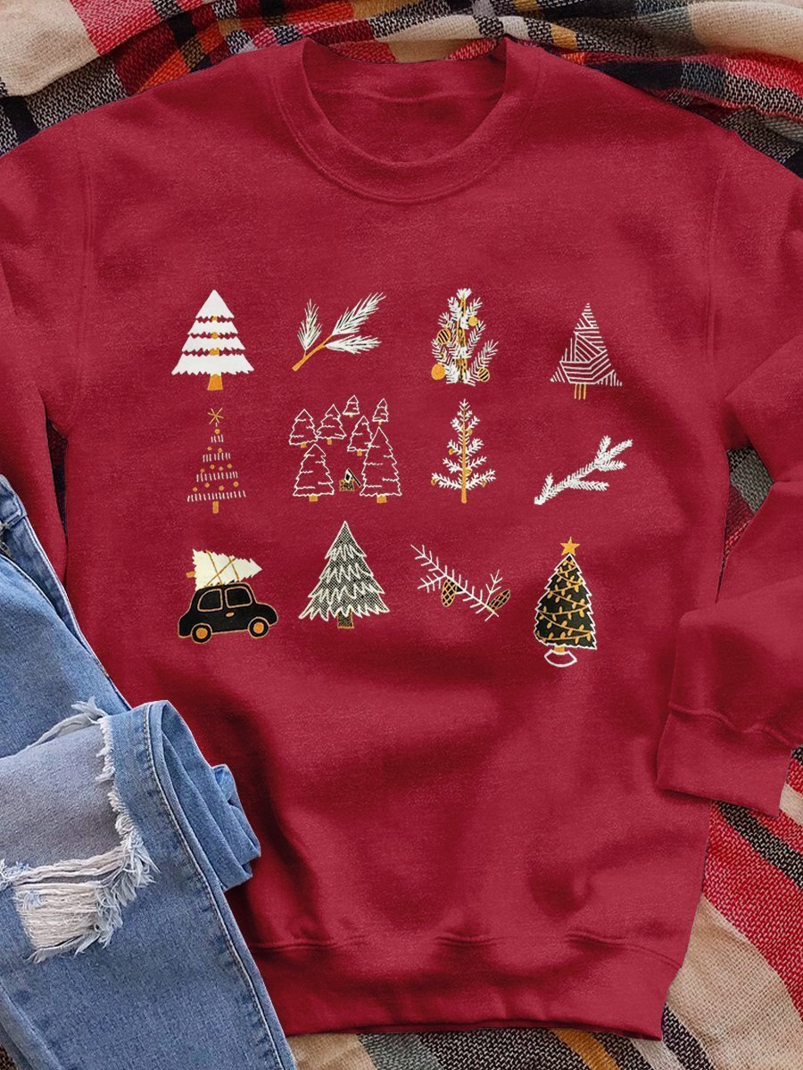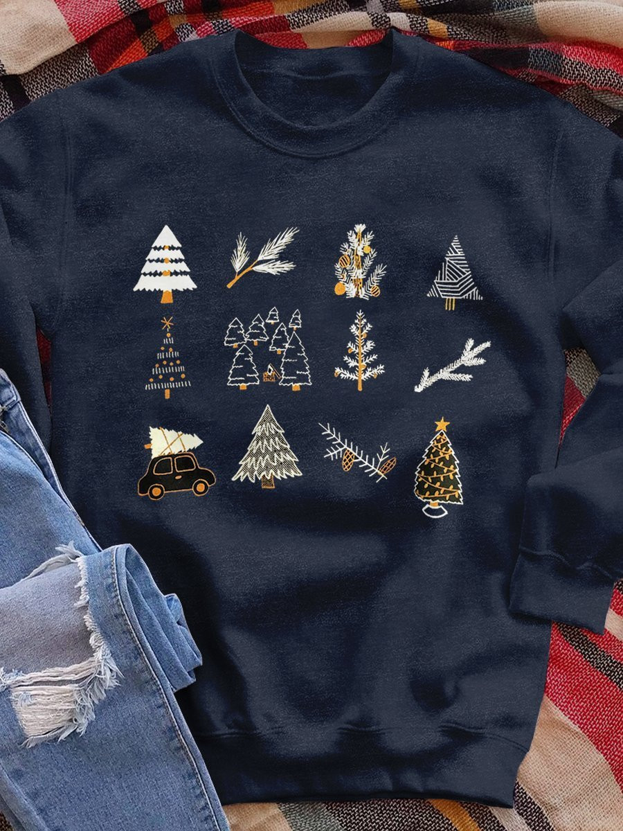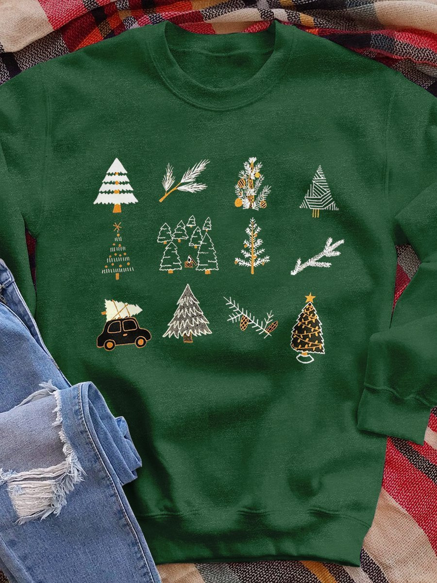 Christmas Trees Print Long Sleeve Sweatshirt