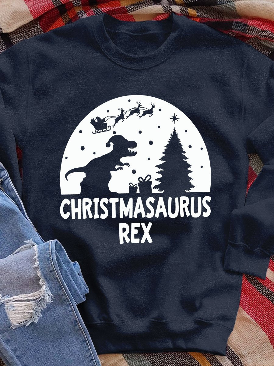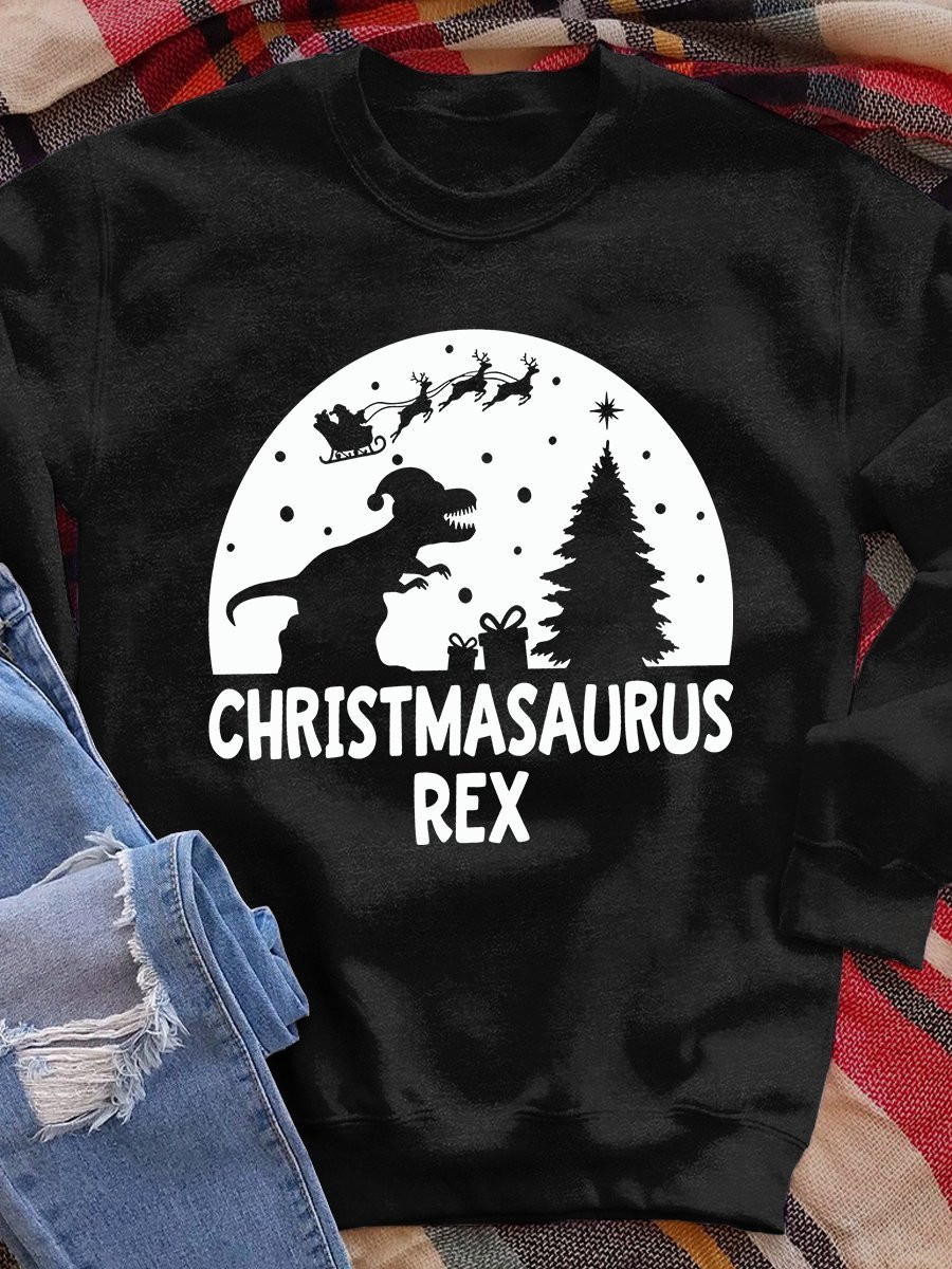 Christmasaurus Rex Print Long Sleeve Sweatshirt