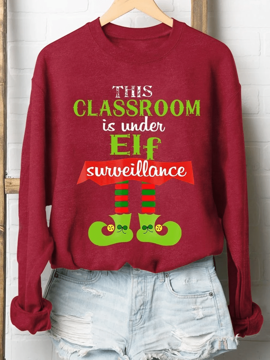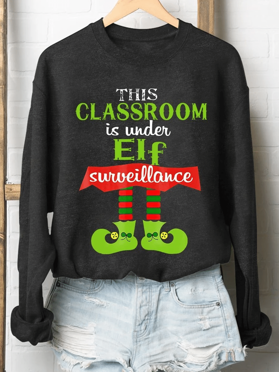 Classroom Is Under Elf Surveillance Christmas Print Long Sleeve Sweatshirt