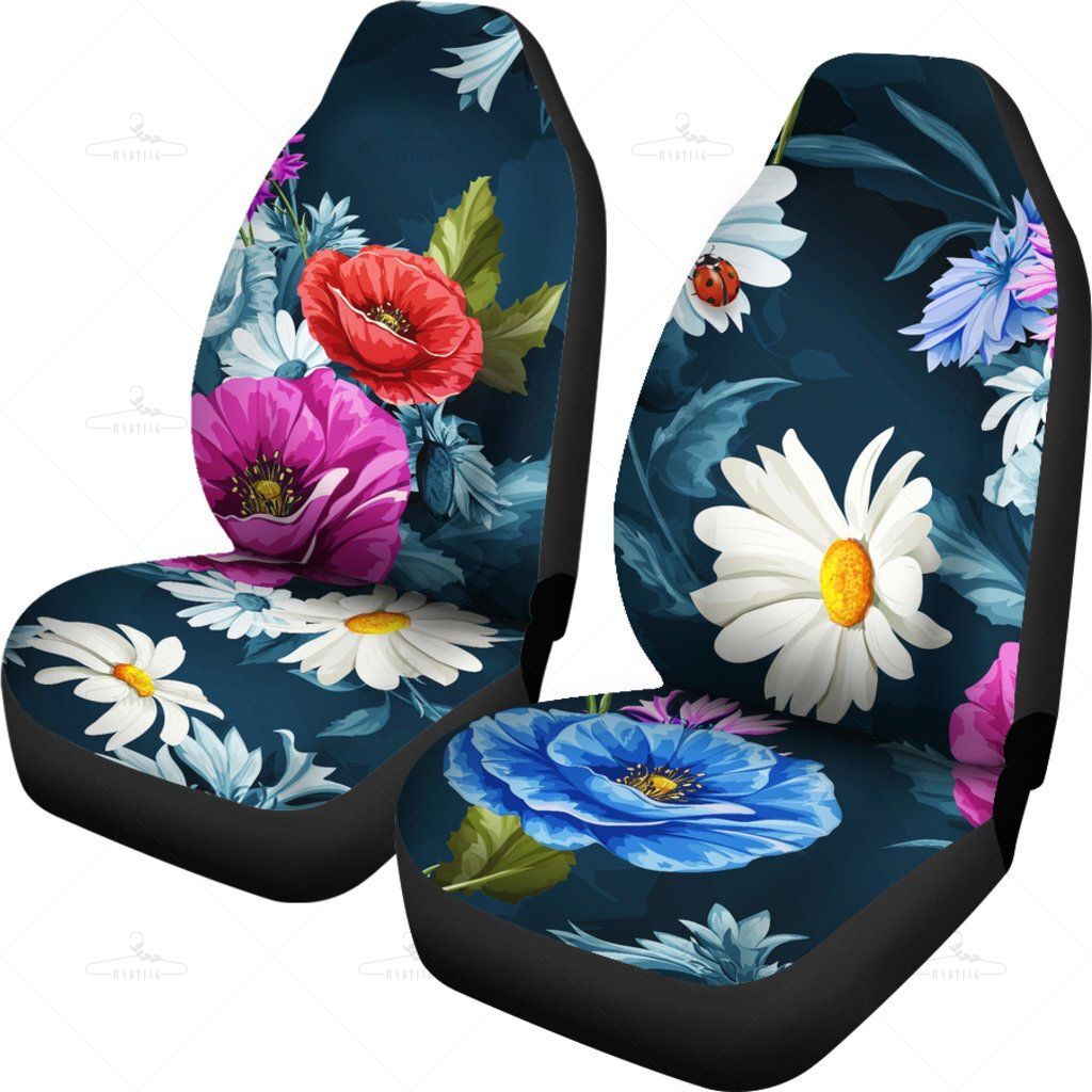 Colorful Floral Flowers Navy Blue Car Seat Covers Pair, 2 Front Car Seat Covers, Seat Cover For Car, Car Seat Protector, Car Accessory