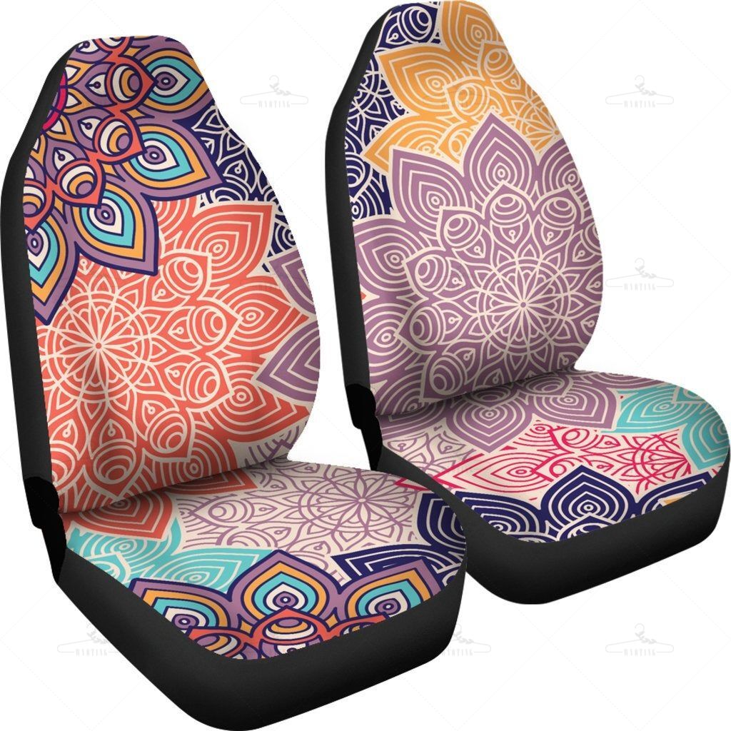 Colorful Floral Mandalas Car Seat Covers Pair, 2 Front Seat Covers, Car Seat Covers, Car Seat Protector, Car Accessory, Mandalas, Flowers
