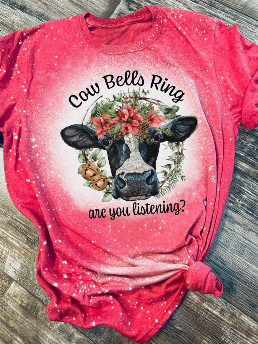 Cow Bells Ring Christmas Print Short Sleeve T-Shirt