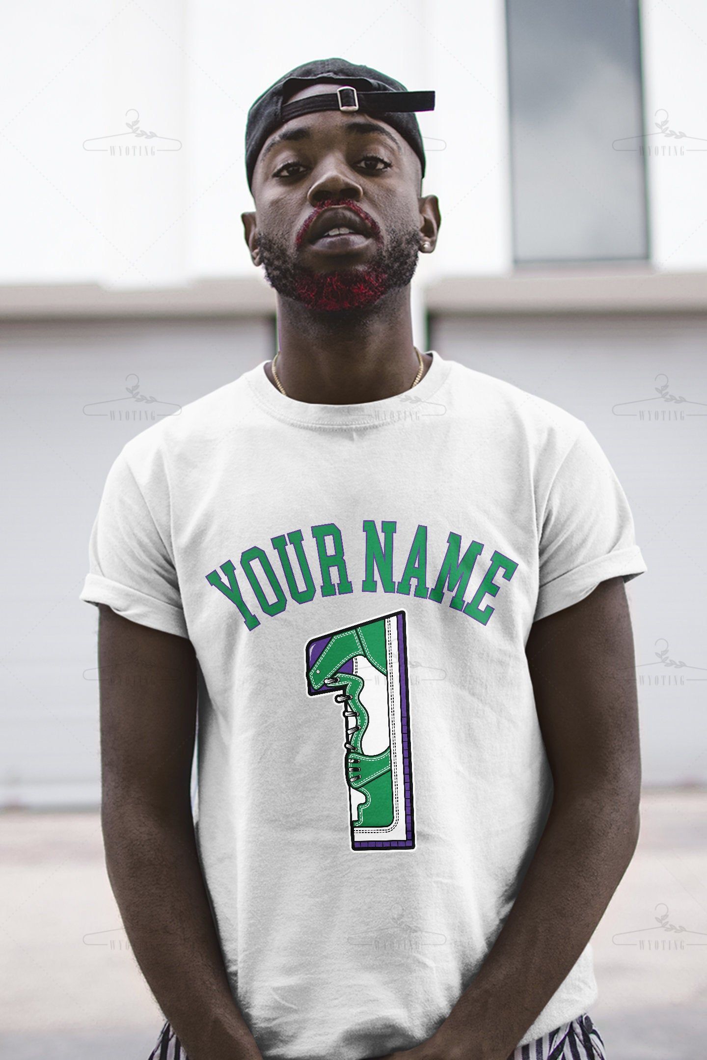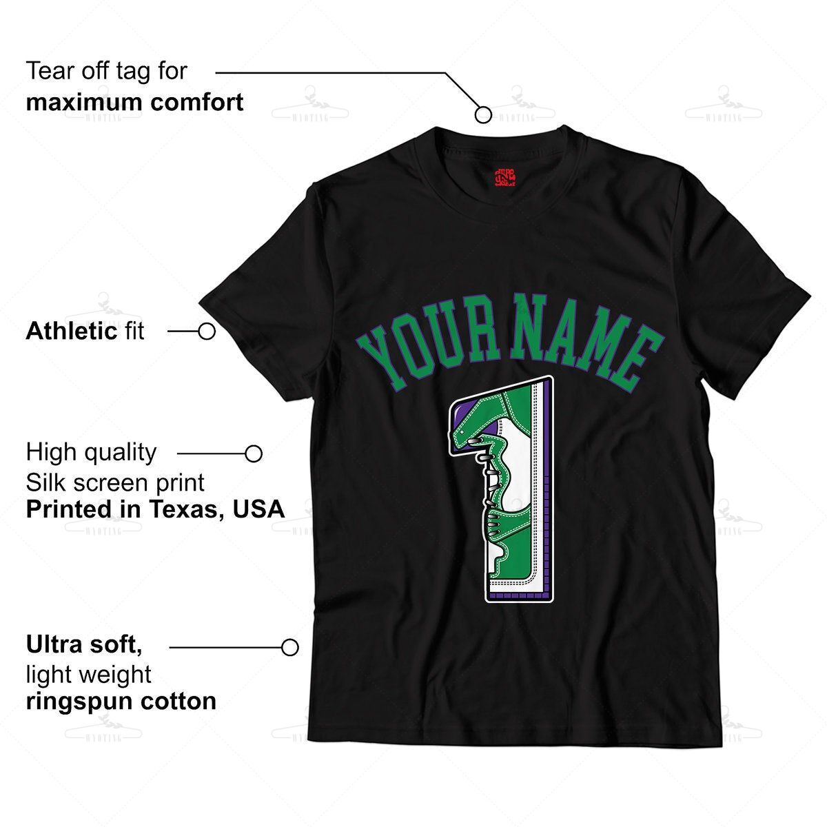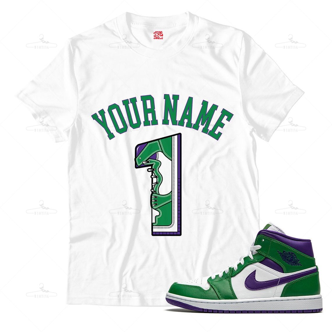 Customized Name / Number 1 Unisex Shirt Match Jordan 1 Aloe Verde Court Purple