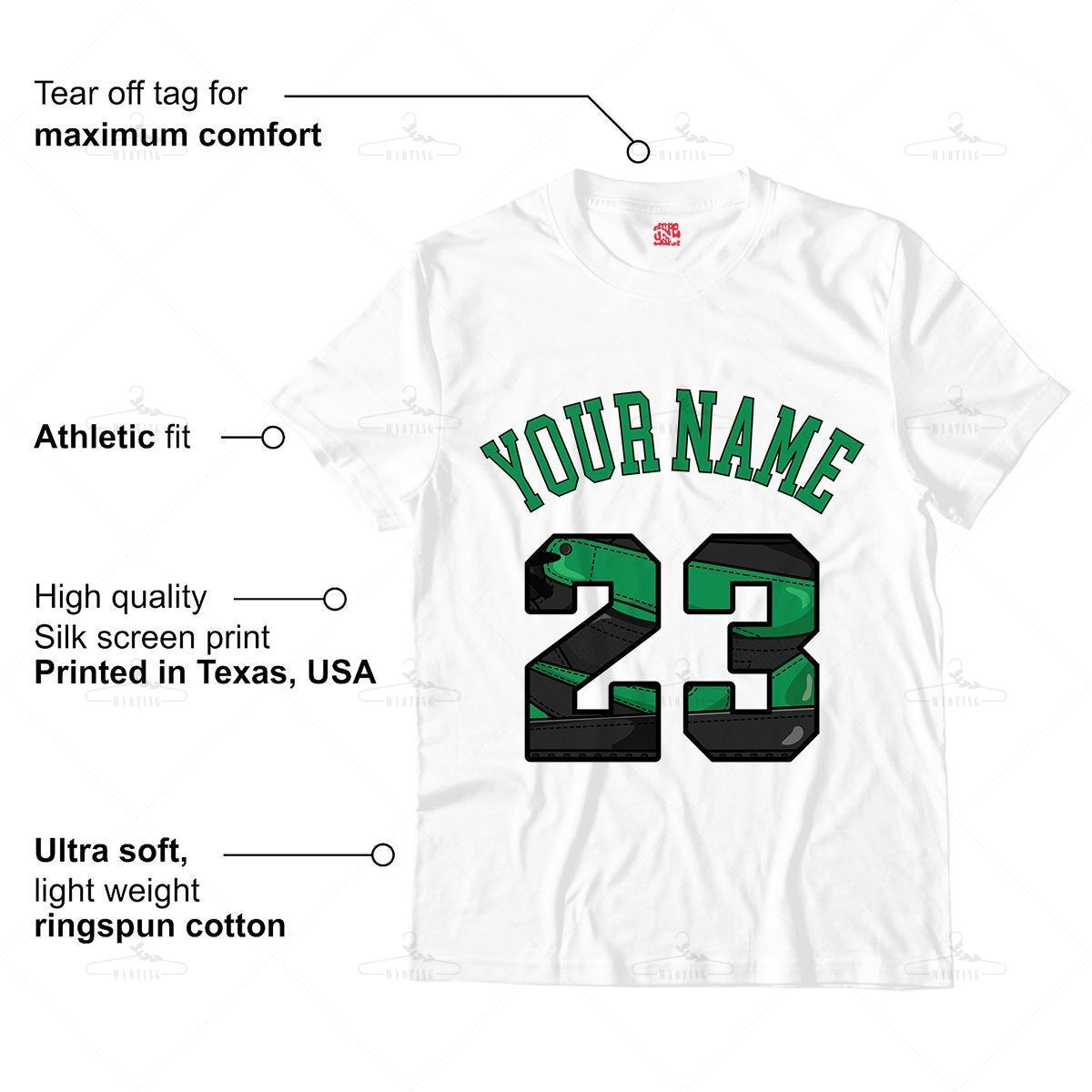 Customized Name / Number 23 Unisex Shirt Match Jordan 1 Pine Green