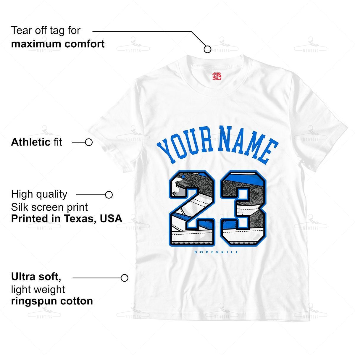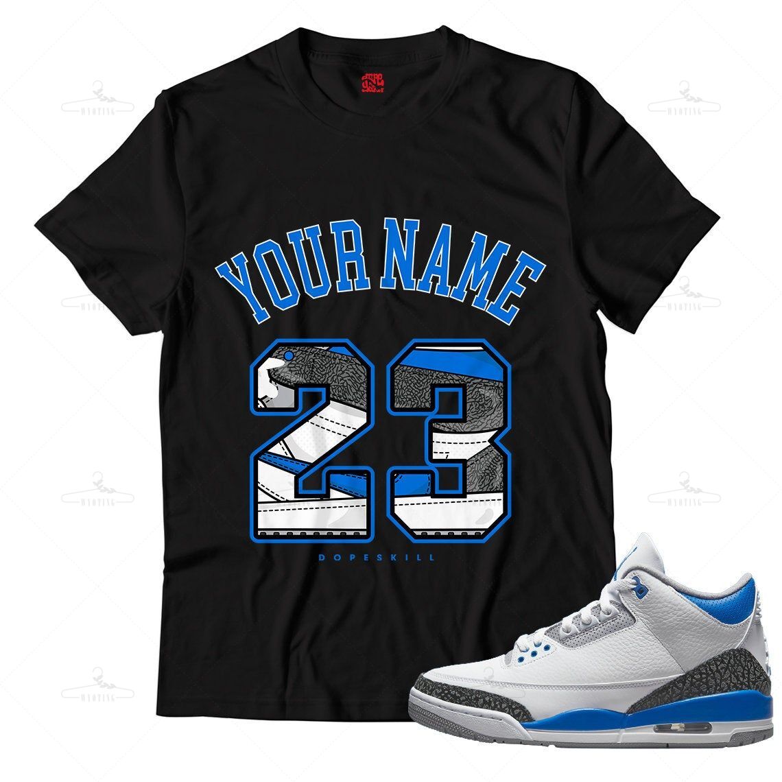 Customized Name & Number 23 Unisex Shirt Match Jordan 3 Racer Blue