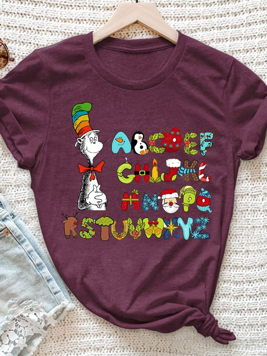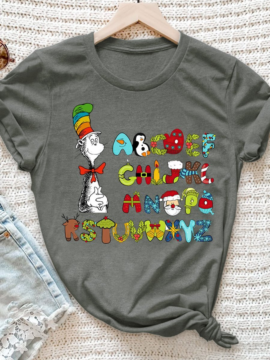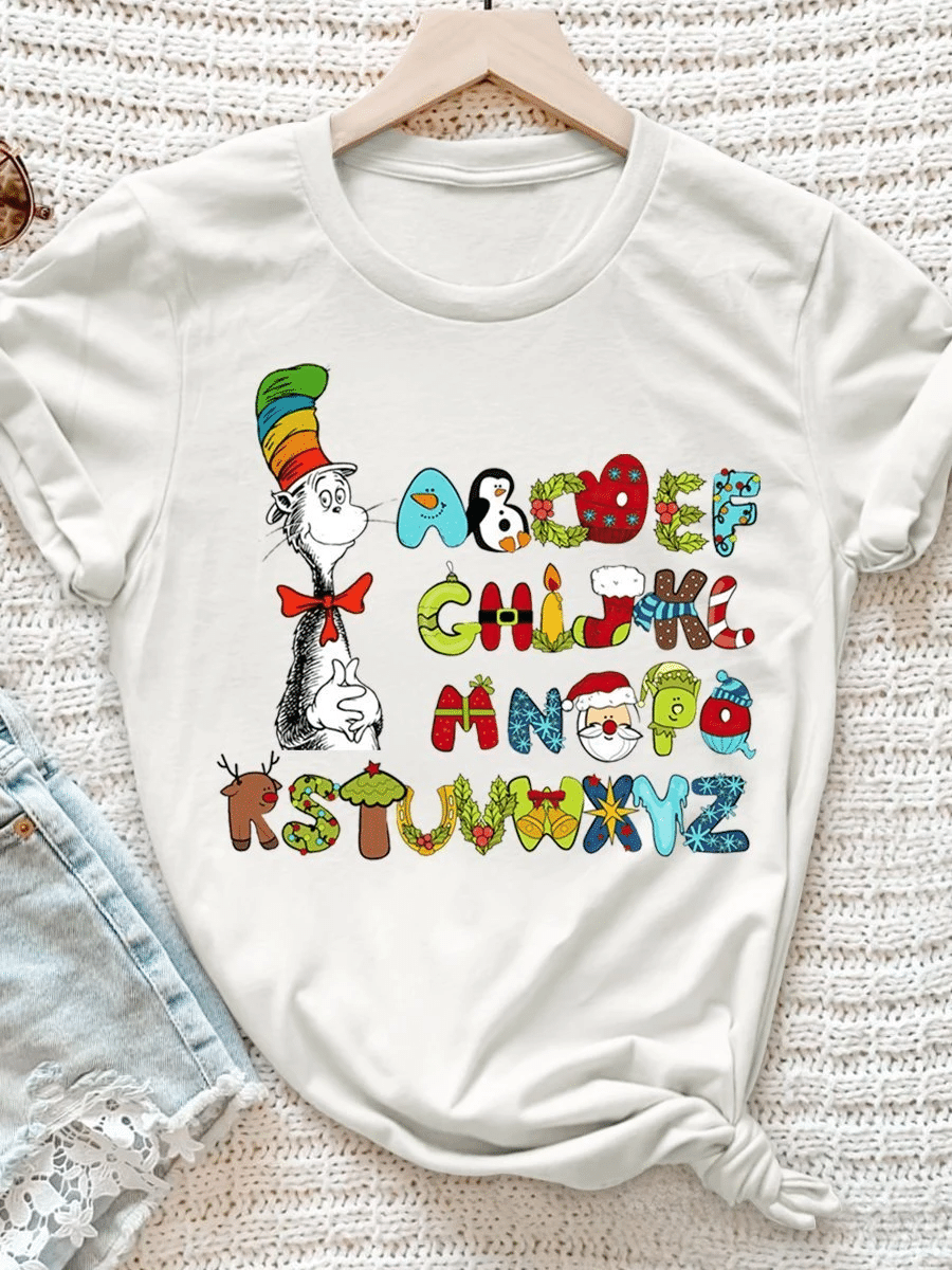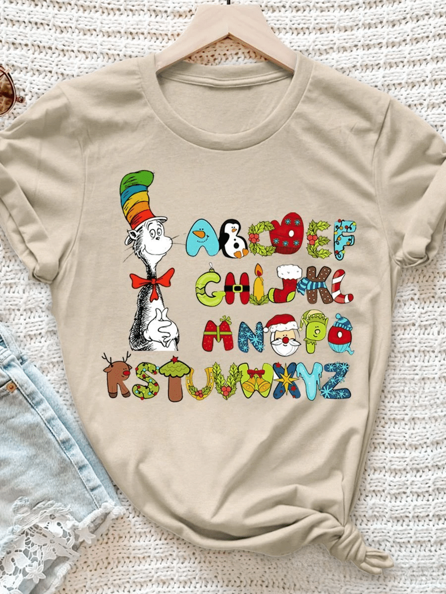 Cute Christmas Alphabet Teaching Print Short Sleeve T-Shirt