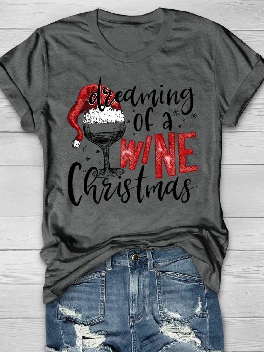 Dreaming Of A Wine Christmas Print Short Sleeve T-Shirt