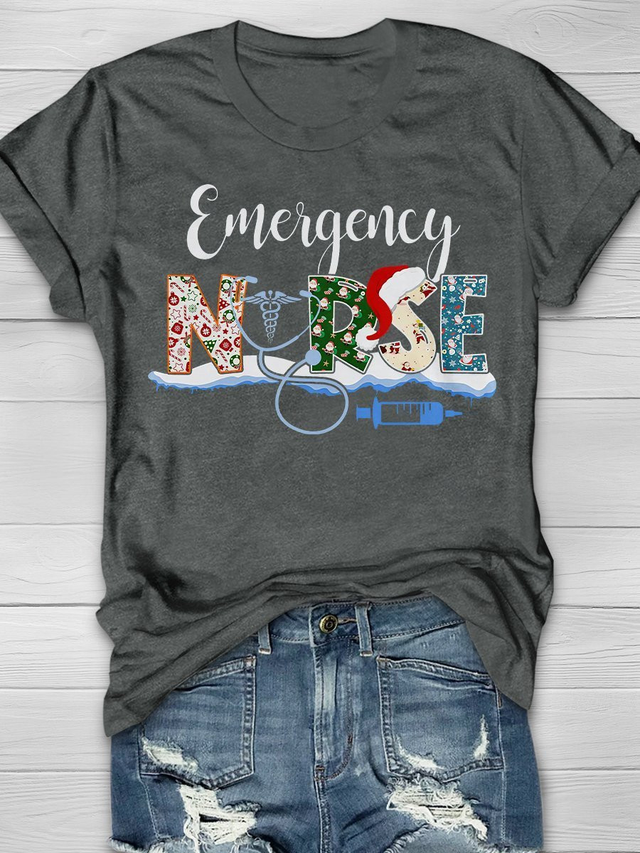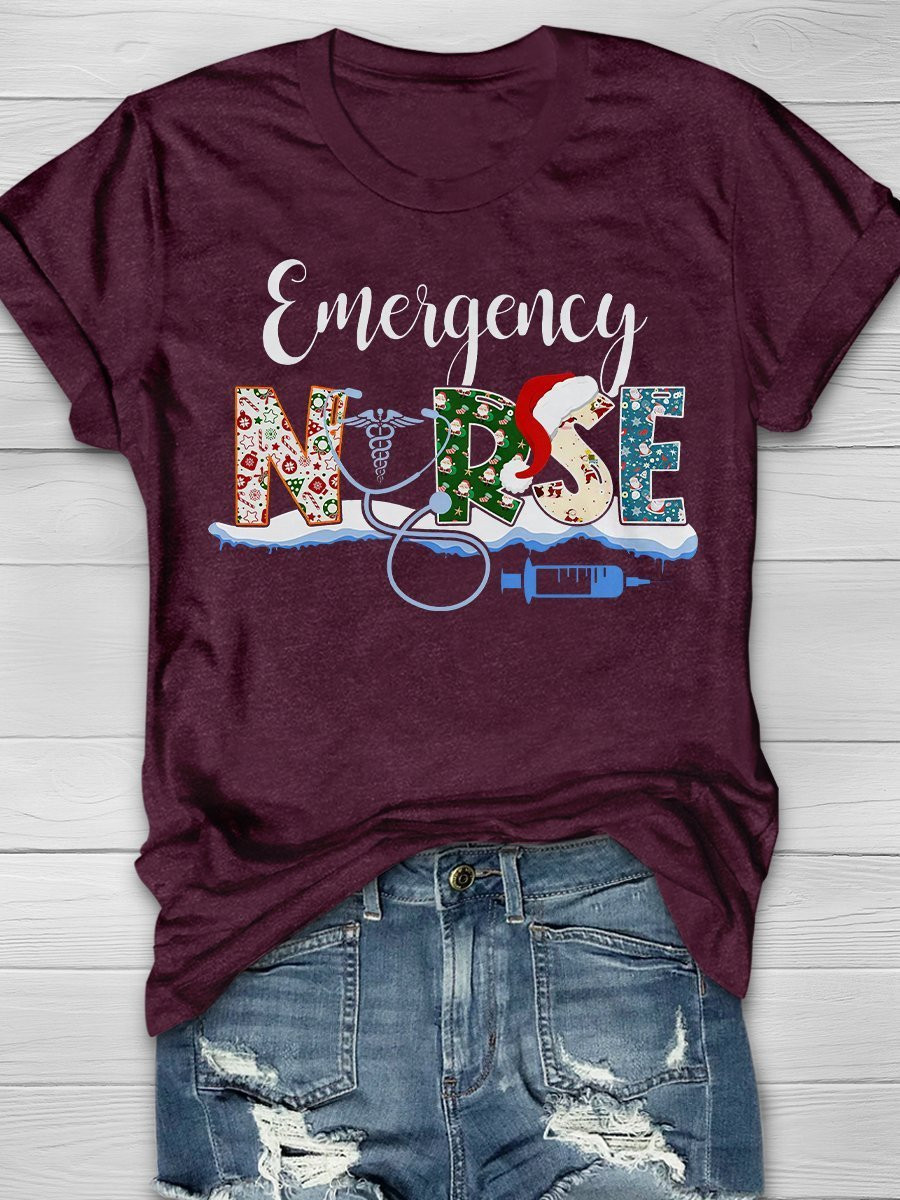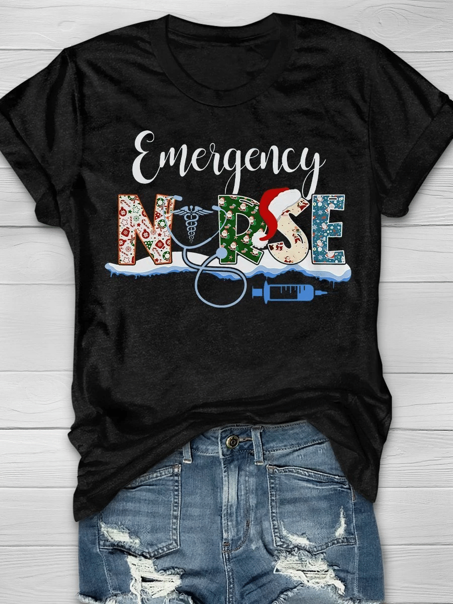 Emergency Nurse Christmas Print Short Sleeve T-Shirt