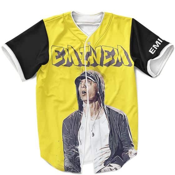 Eminem Merch Eminem Performing His Craft Fan Art Yellow Baseball Shirt