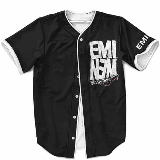 Eminem Merch Eminem Seventh Album Cover Recovery Black Baseball Shirt
