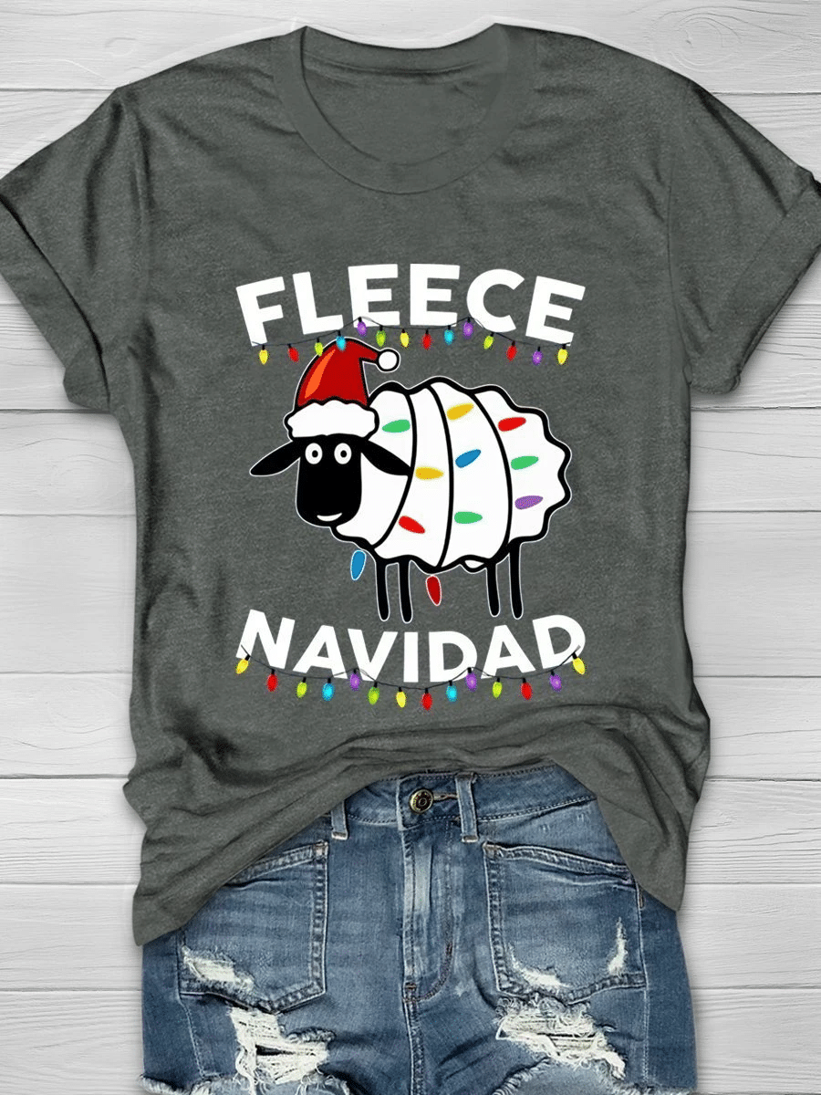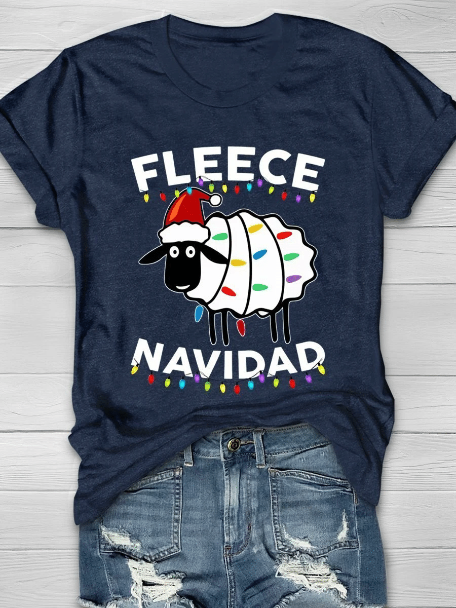 Fleece Navidad Christmas Print Short Sleeve T-Shirt