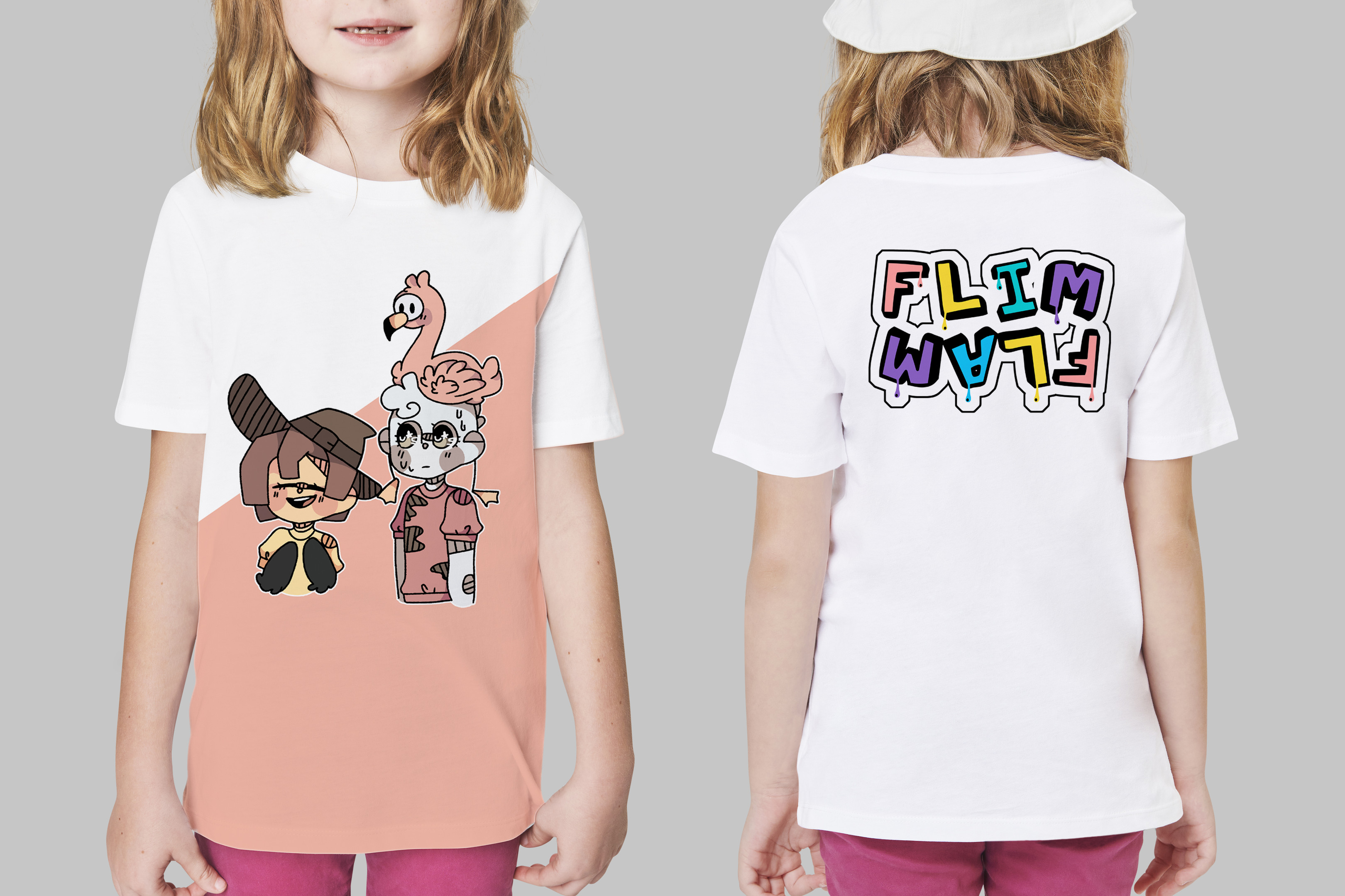 Flim Flam Cute Flamingo Cartoon Image Boys Girls Kids T-Shirt