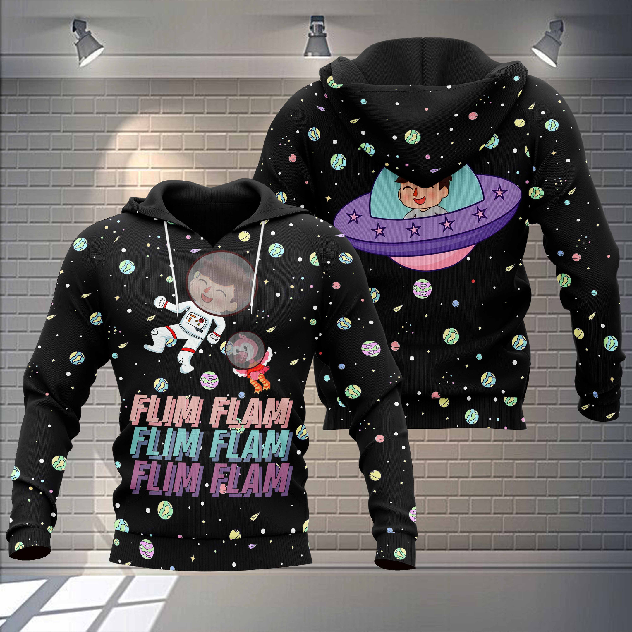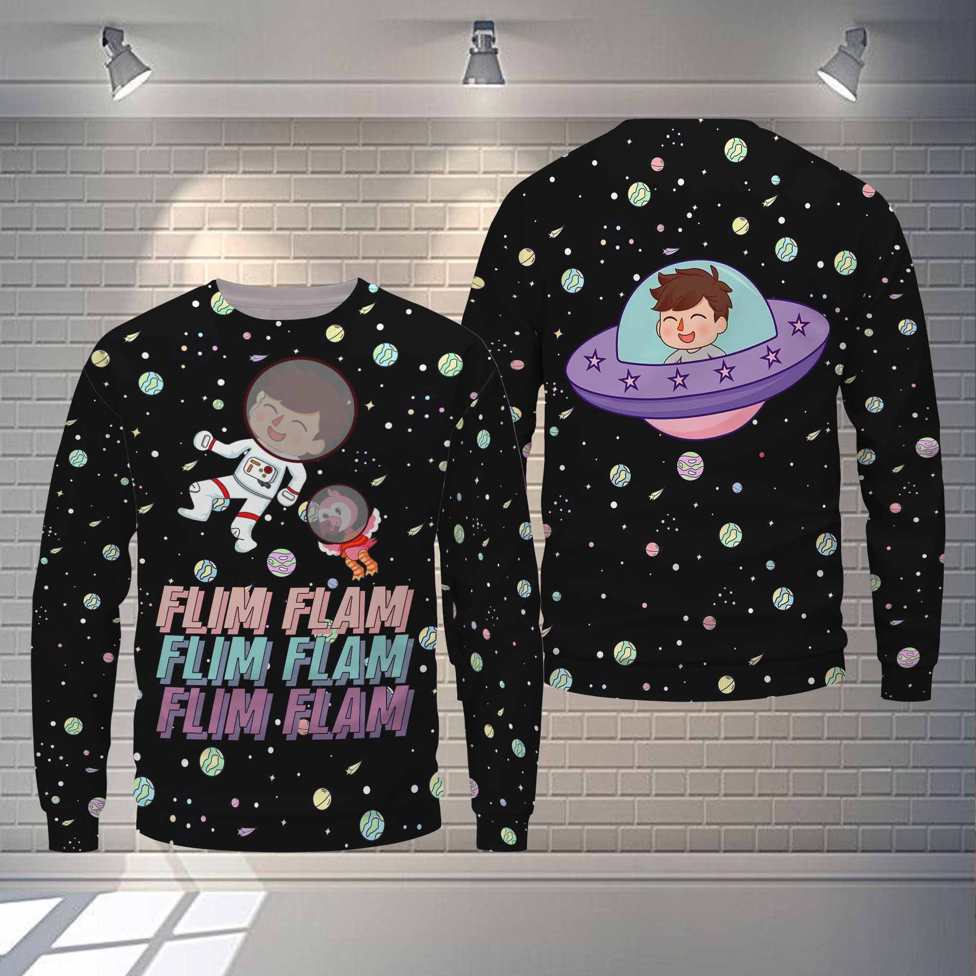 Flim Flam Flamingo Merch Flamingo In Galaxy Cute T-Shirt Sweatshirt Hoodie