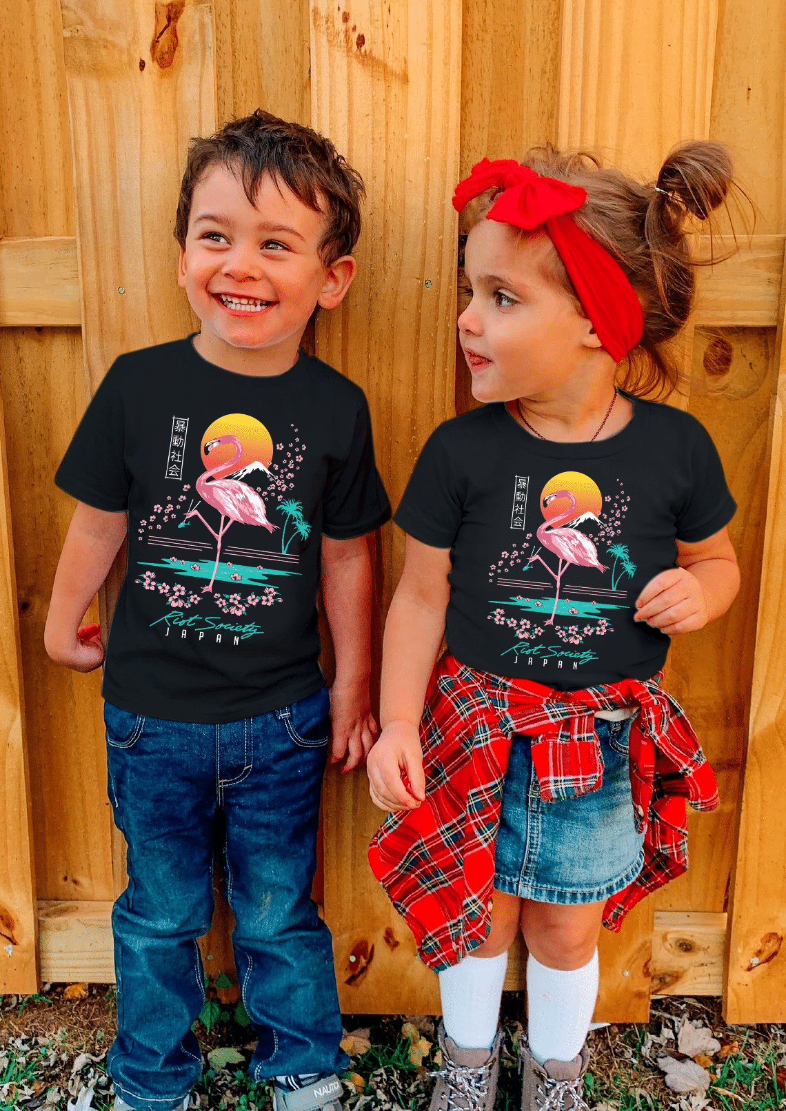 Flim Flam Pink Flamingo Japan Girls Boys Kids T-Shirt