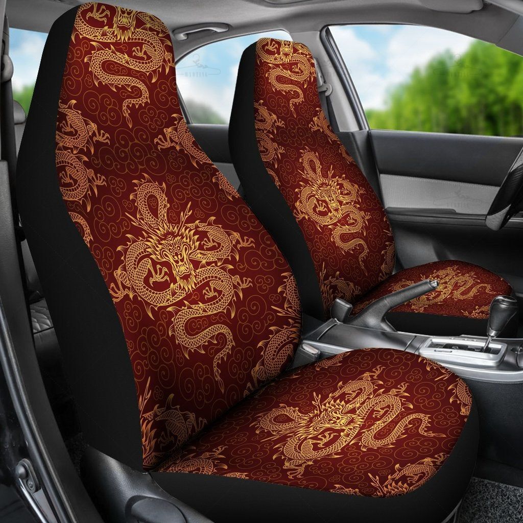 Golden Dragon Red Car Seat Covers Pair, 2 Front Car Seat Covers, Seat Cover For Car, Car Seat Protector, Car Accessory