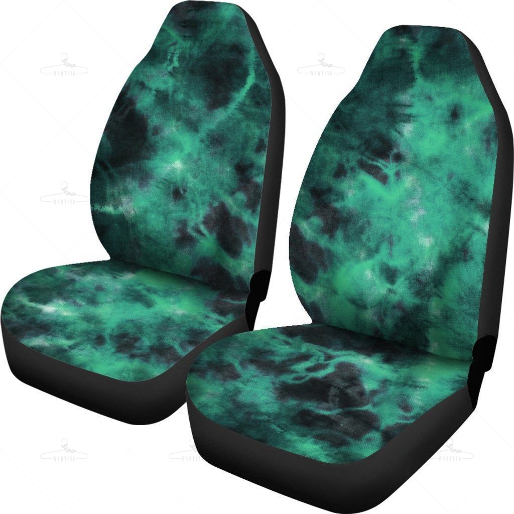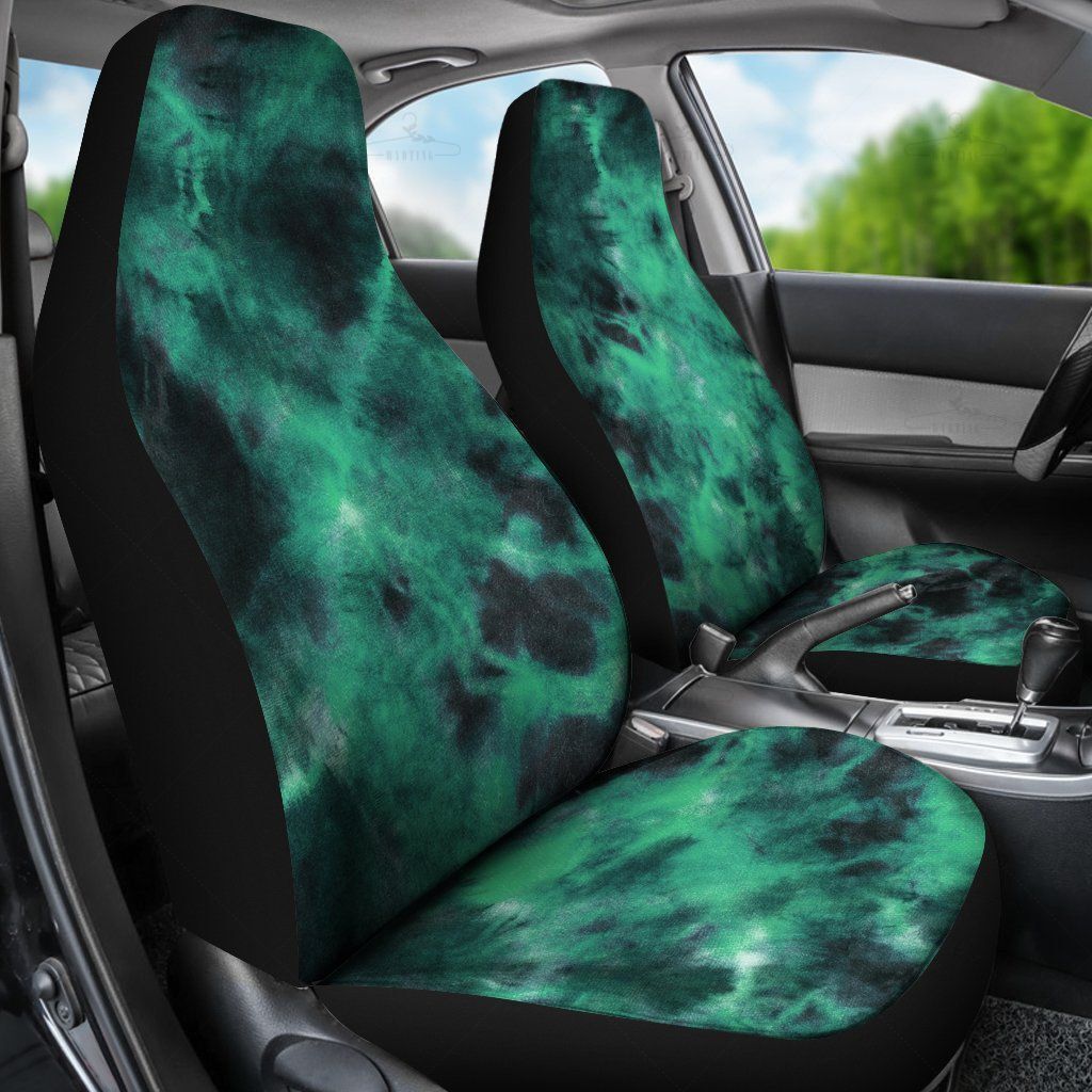 Green Grunge Tie Dye Black Car Seat Covers Pair, 2 Front Car Seat Covers, Seat Cover For Car, Car Seat Protector, Car Accessory
