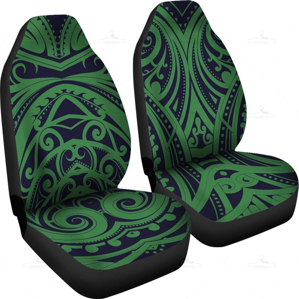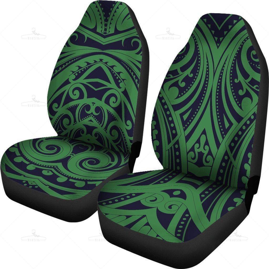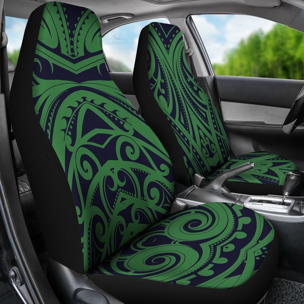 Green Polynesian Tribal Car Seat Covers Pair, 2 Front Car Seat Covers, Seat Cover For Car, Car Seat Protector, Car Accessory