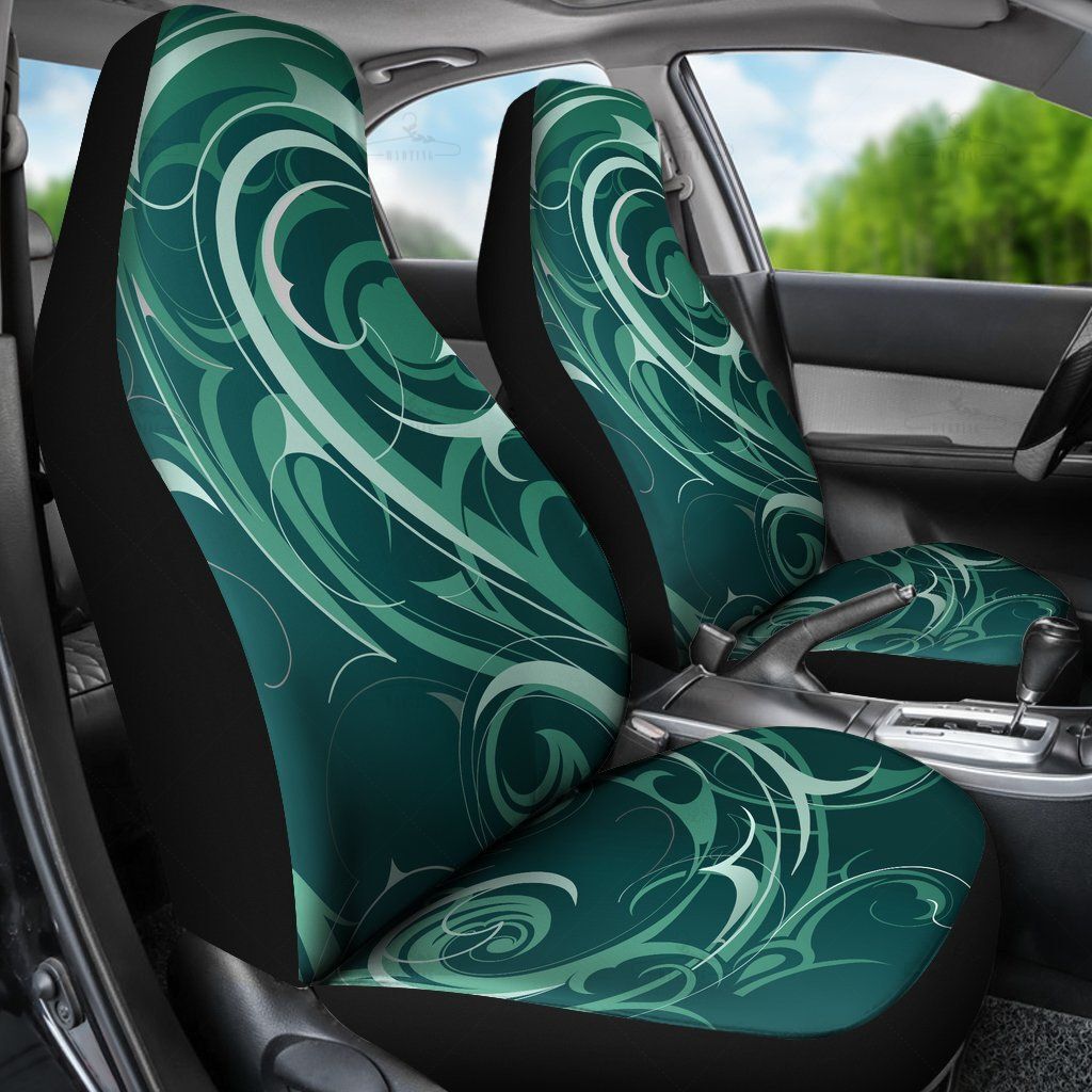 Green Tribal Abstract Swirls Car Seat Covers Pair, 2 Front Seat Covers, Car Seat Covers, Car Seat Protector, Car Accessory, Polynesian