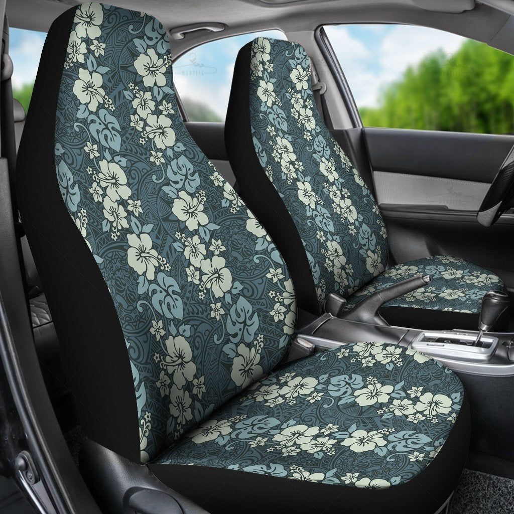 Green Tribal Floral Car Seat Covers Pair, 2 Front Seat Covers, Car Seat Covers, Car Seat Protector, Car Accessory, Polynesian, Flowers