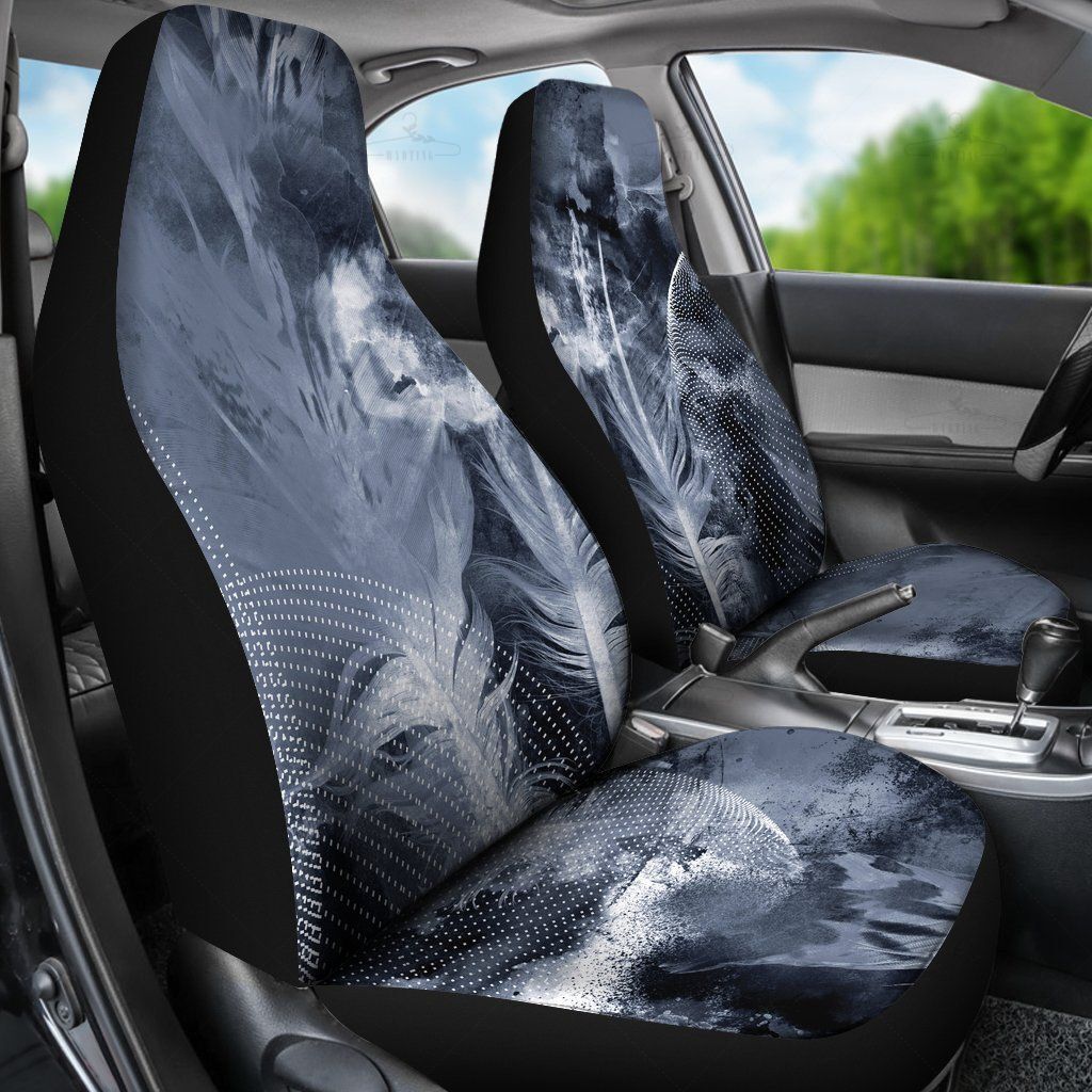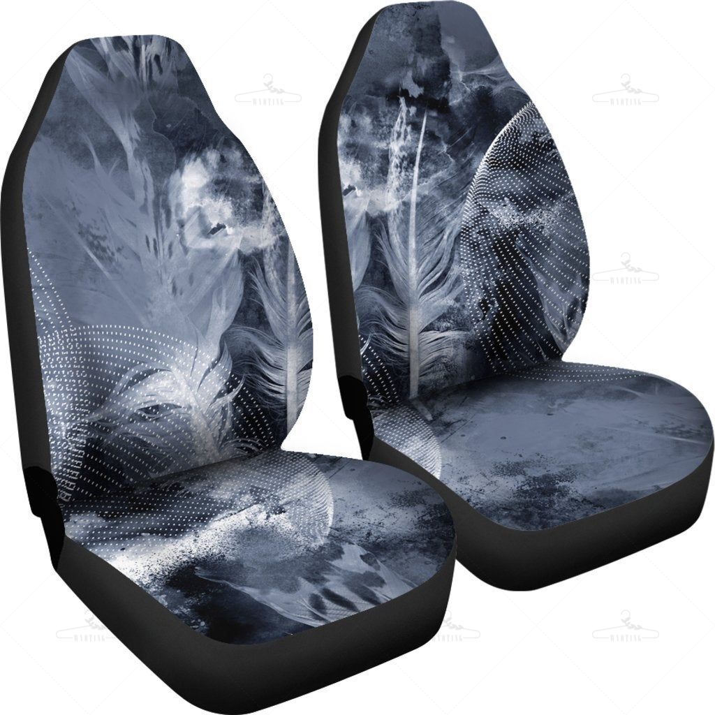 Grey Feathers Abstract Car Seat Covers Pair, 2 Front Car Seat Covers, Seat Cover For Car, Car Seat Protector, Car Accessory