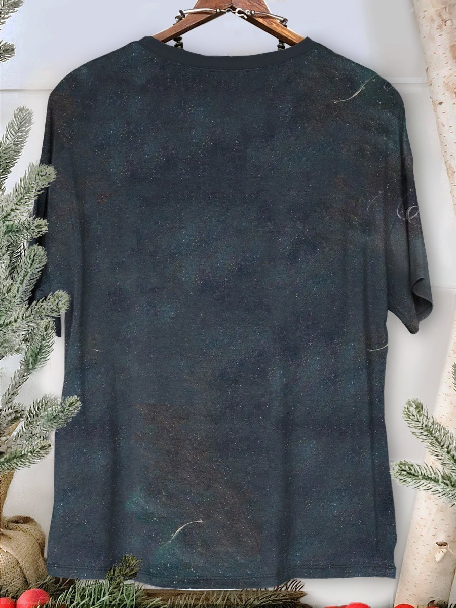 Hand Drawing Christmas Deer Print Short Sleeve T-Shirt