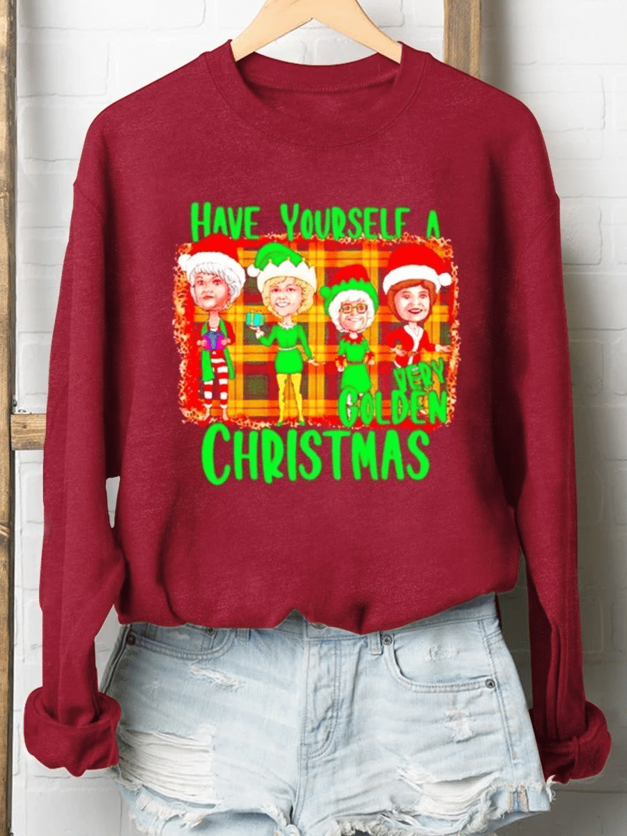 Have Yourself A Very Golden Christmas Print Long Sleeve Sweatshirt