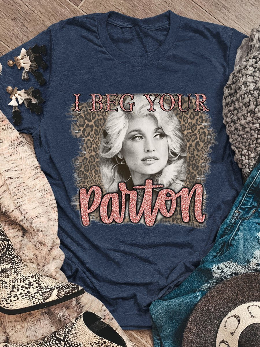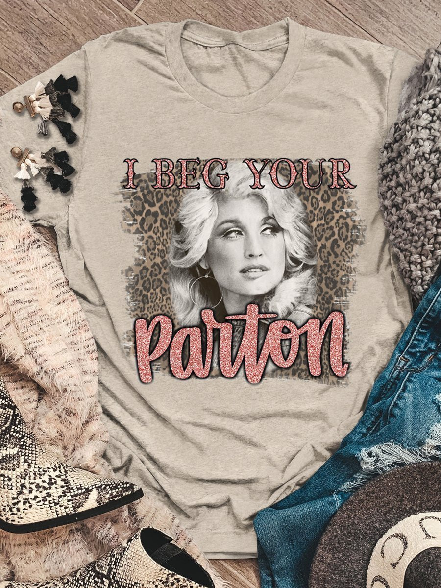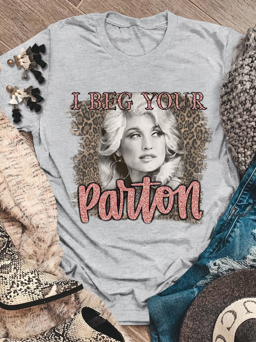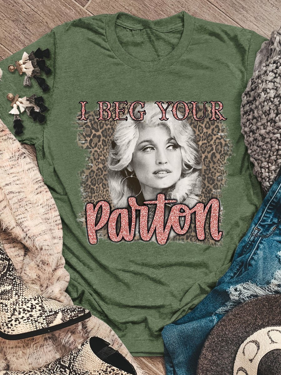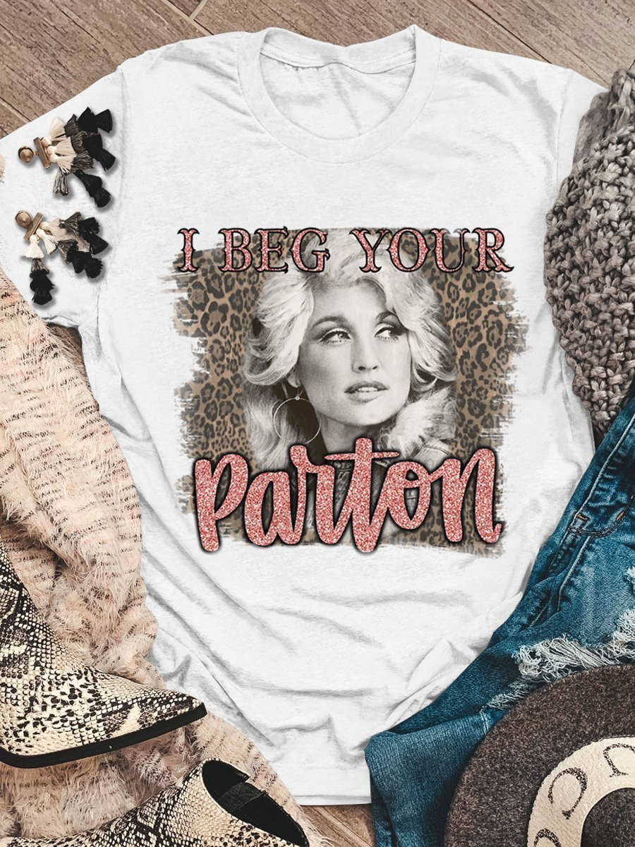 I Beg Your Parton Dolly Christmas Print Short Sleeve T-Shirt