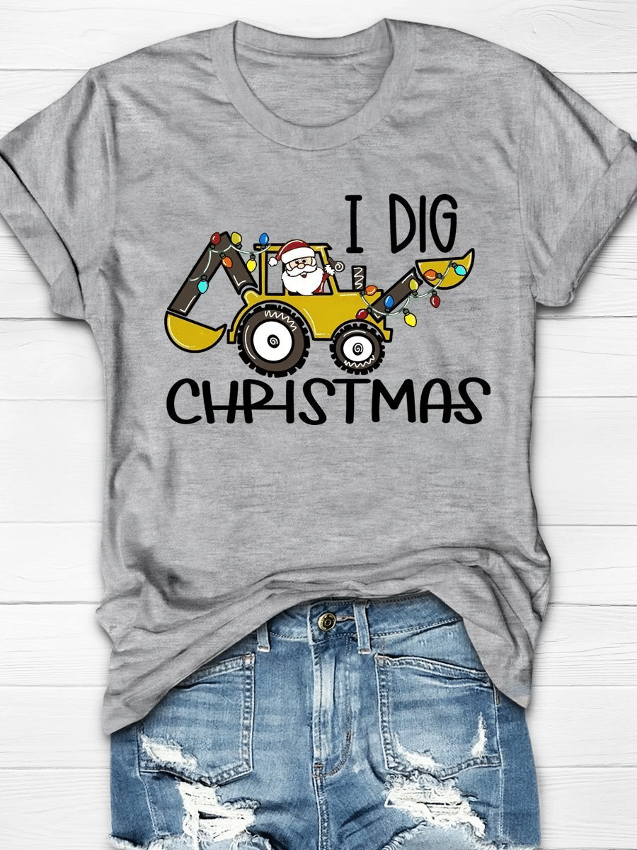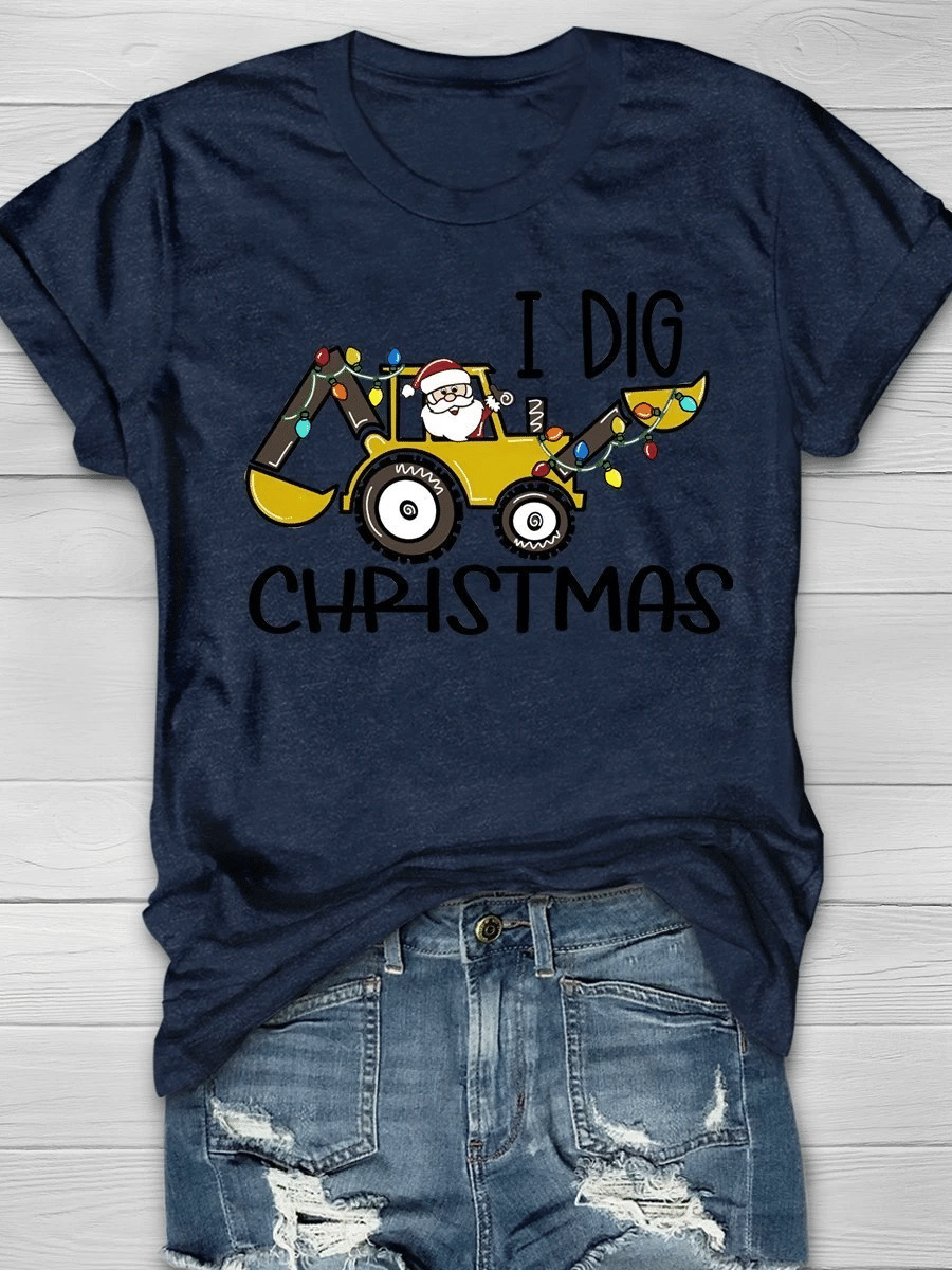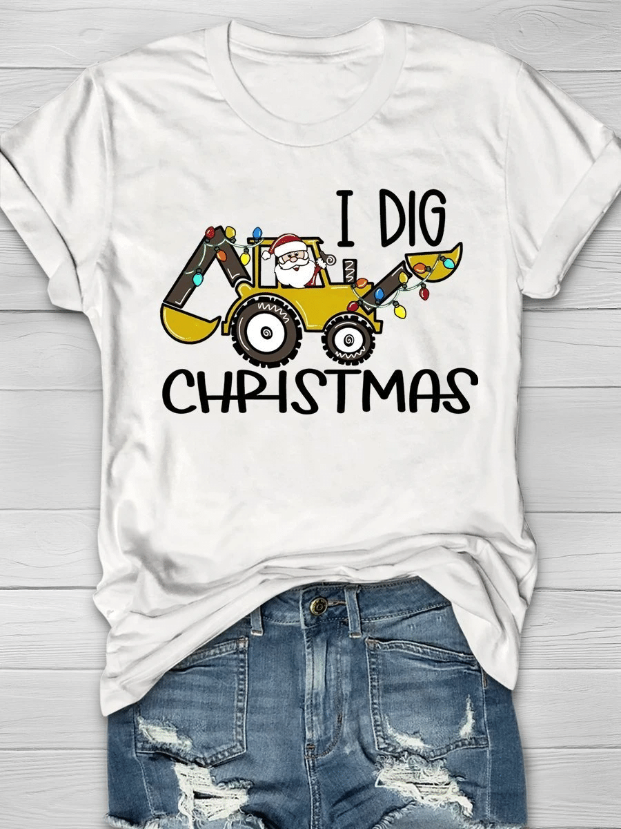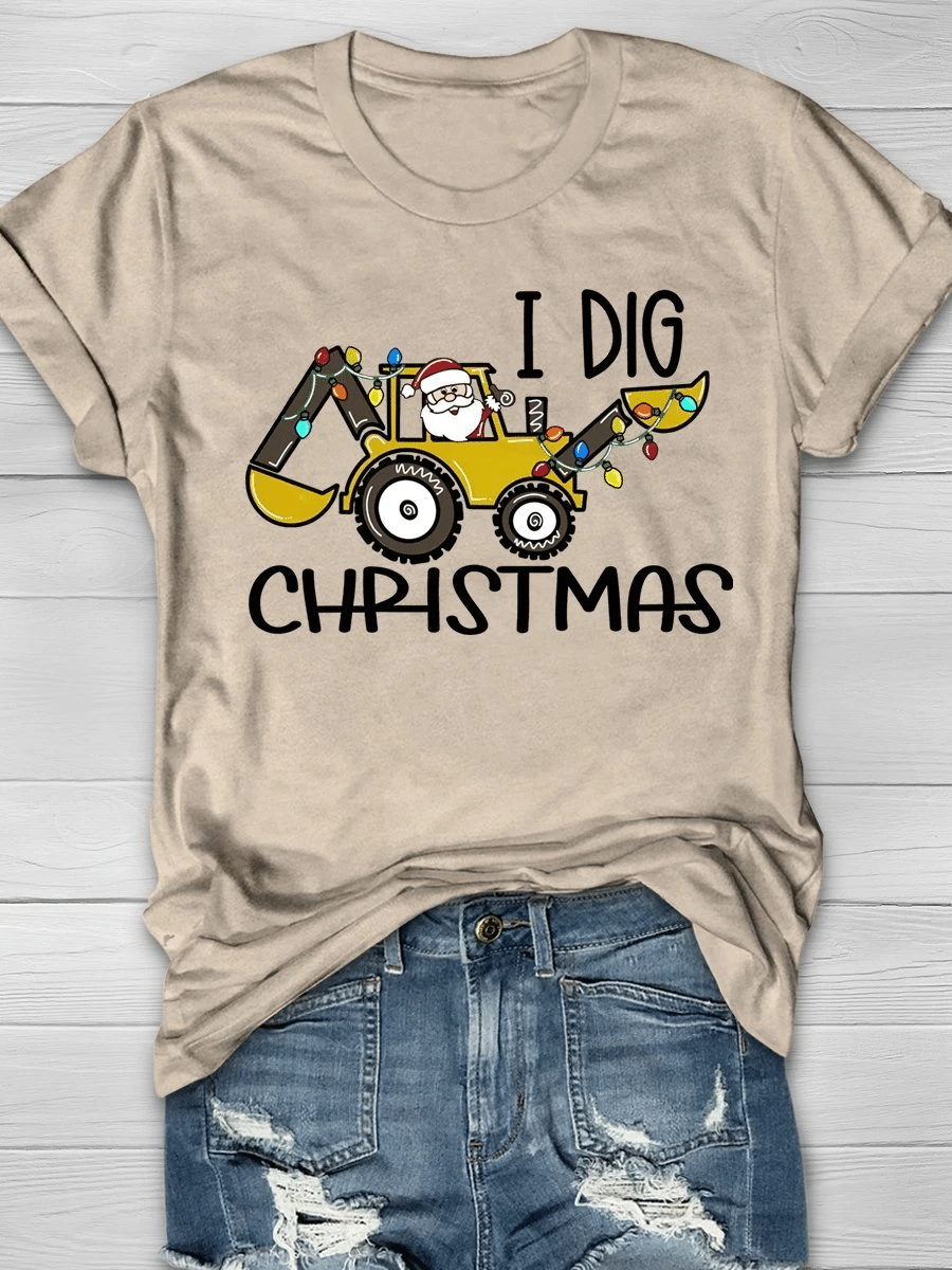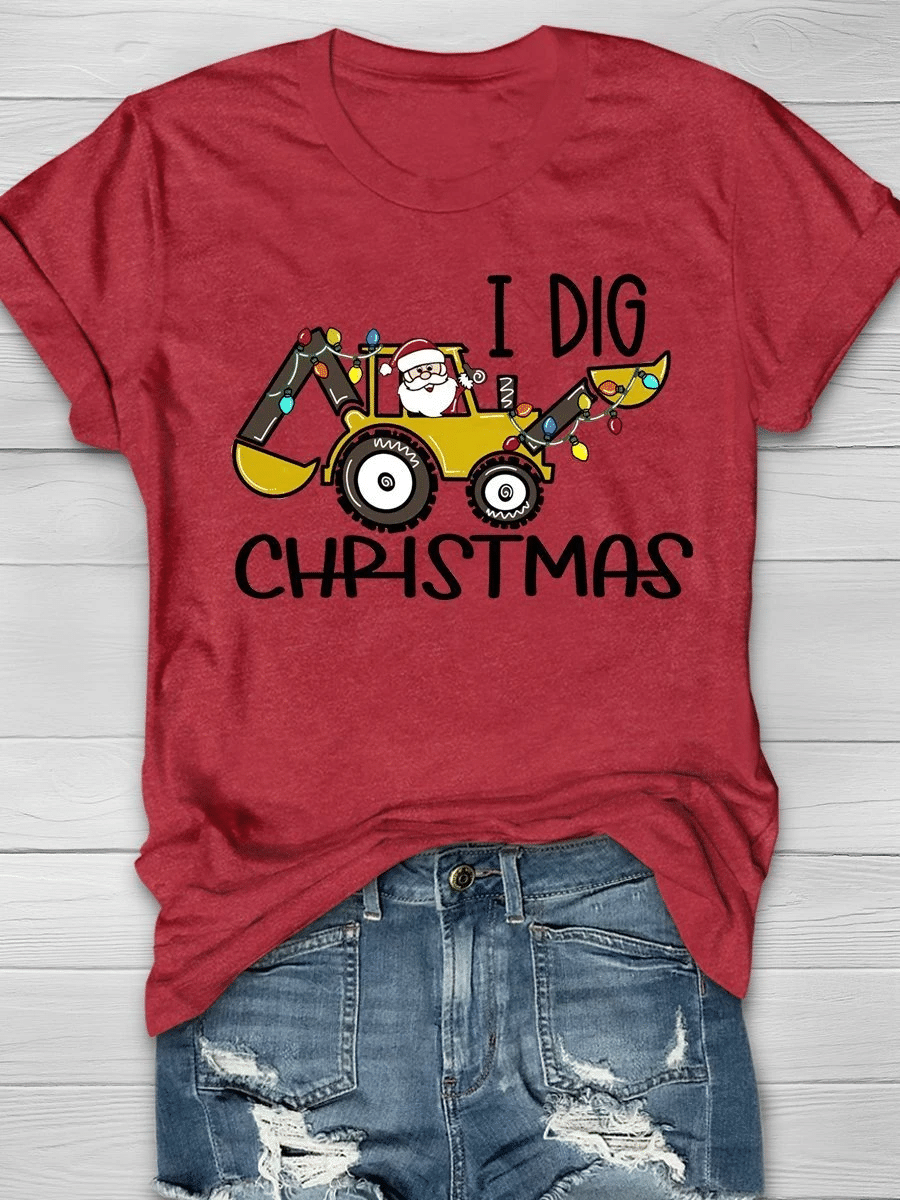 I Dig Christmas Santa Print Short Sleeve T-Shirt