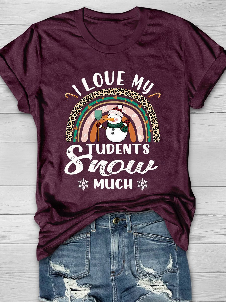 I Love My Students Snow Much Print Short Sleeve T-Shirt